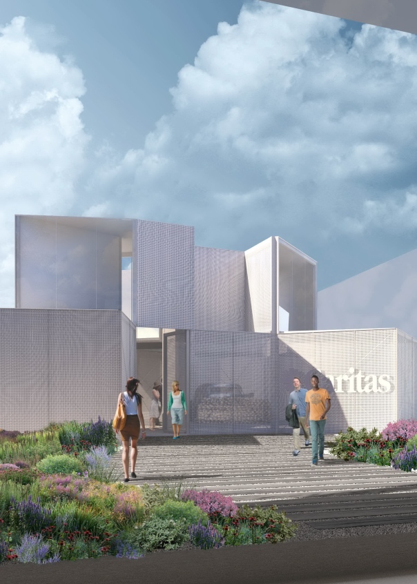 Collocata nei pressi dell’ingresso, in una posizione molto visibile lungo il decumano, l’Edicola, realizzata dallo studio Piuarch, si presenta come un cubo spezzato che declina anche architettonicamente l’idea della condivisione come ricchezza. L’involucro è il rivestimento esterno di un’idea che trova poi espressione all’interno. I visitatori, varcata la soglia, non saranno semplici spettatori, ma protagonisti di un’esperienza multimediale. Ascoltando messaggi, vedendo immagini, percepiranno con i loro sensi in che modo possa trasformarsi in realtà un messaggio paradossale come quello evangelico.