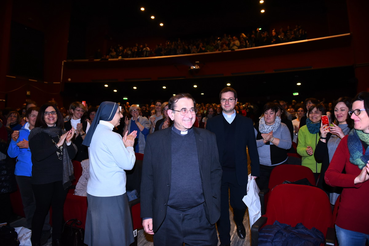 Entra accolto dall’entusiasmo delle centinaia di catechiste e catechisti che affollano l’Auditorium “Don Bosco” per la presentazione del Cammino dei 100 Giorni Cresimandi, che condurrà al grande incontro di San Siro in programma il 26 maggio prossimo. È l’Arcivescovo che, così, per la prima volta incontra questi educatori e formatori dei ragazzi.E proprio da tre figure emblematiche parte la riflessione introduttiva di monsignor Delpini che racconta di un’immaginaria catechista che si chiama Luna e «che si sente impotente: vorrebbe scaldare, ma vede che coloro a cui si rivolge rimangono freddi e confusi. Lei, impotente appunto come la luna che non ha luce sua e che, pur non essendo impreparata, non incide».