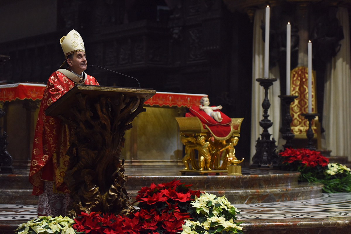 È questo che l’Arcivescovo chiede ai rappresentanti e ministri delle Chiese cristiane presenti in Duomo per il Pontificale solenne dell’1 gennaio 2020. Speranza e augurio che si estende ai moltissimi fedeli che prendono parte alla Celebrazione, tra cui coloro che hanno camminato per le vie del centro di Milano, nella marcia organizzata dalla Comunità di Sant’Egidio, portando striscioni di pace e i cartelli con i nomi dei Paesi ancora segnati da guerre e persecuzioni. Concelebrano il Rito, una ventina di sacerdoti tra cui i vescovi monsignor Francesco Brugnaro e Paolo Martinelli.