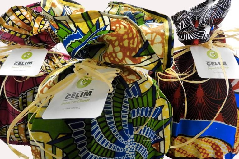 I panettoni della campagna natalizia Celim sono artigianali, realizzati dalla Cooperativa Variomondo con ingredienti provenienti dal mercato equo e solidale e confezionati con i bellissimi colori delle stoffe africane.
