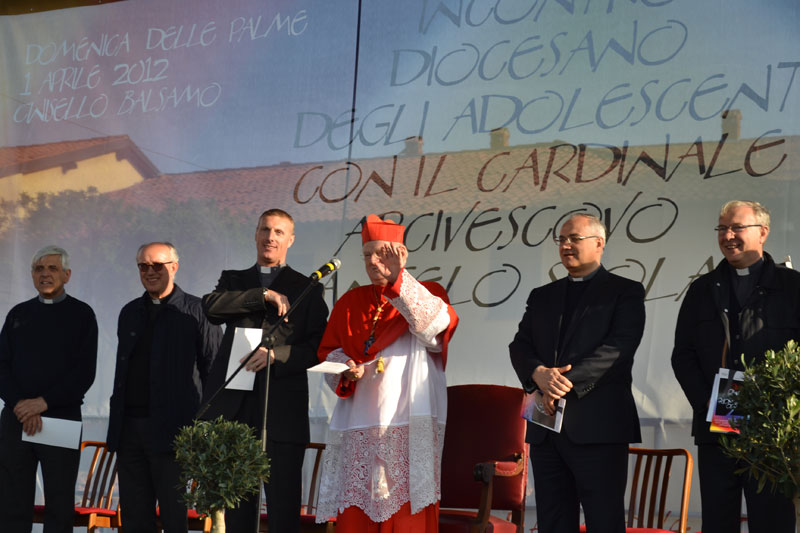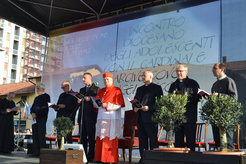 Erano circa 4000 i giovani che ieri pomeriggio hanno gremito le vie di Cinisello Balsamo per il primo incontro diocesano con il cardinale Angelo Scola. A poca distanza dal luogo in cui le famiglie di tutto il mondo incontreranno il Papa in occasione di Family 2012, gli adolescenti hanno anticipato il clima festoso e di riflessione di quei giorni.