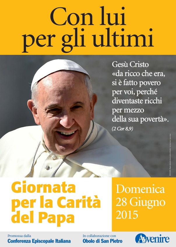 Questo deve essere la Giornata per la carità del Papa: la testimonianza della carità gioiosa, la garanzia che la resurrezione di Cristo viene testimoniata anzitutto dalla carità verso i poveri. È il messaggio che continuamente ci invia papa Francesco: la Chiesa è una sola grande carità; la Chiesa è carità o non è. Una Chiesa che dimentica i poveri non è Chiesa, nega se stessa, perché nasconde la verità fondamentale del Vangelo: che Dio è amore universale, e che la Chiesa deve testimoniarlo. Testimonia pure, questa Giornata, che, come è vero che “credere, si crede insieme”, è altrettanto vero che “amare, si ama insieme”: insieme al Papa, per mezzo suo, con carità unica e indivisa.