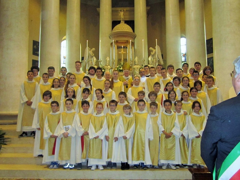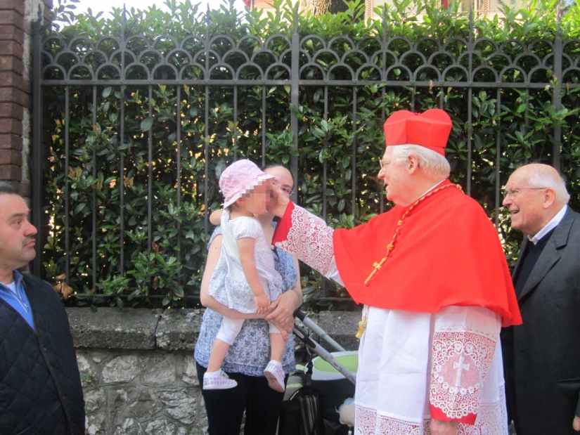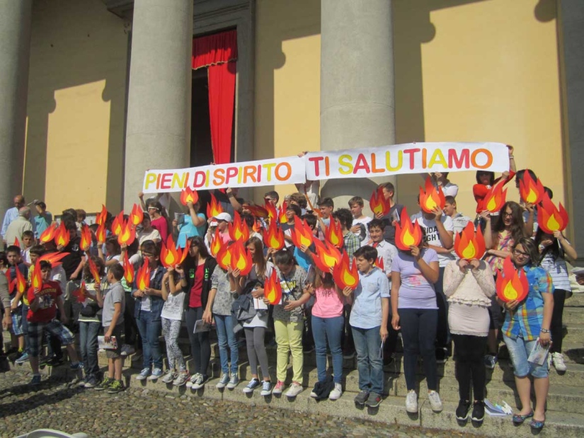 Accolto dalle note della banda e dal saluto dei ragazzi di terza media che si stanno preparando alla Professione di fede, il cardinale non ha fatto mancare sorrisi e carezze per i molti bambini giunti a salutarlo. «Pieni di spirito ti salutiamo», recitavano i cartelli alzati dai ragazzi cresimandi che attendevano Scola cantando sul sagrato della chiesa.