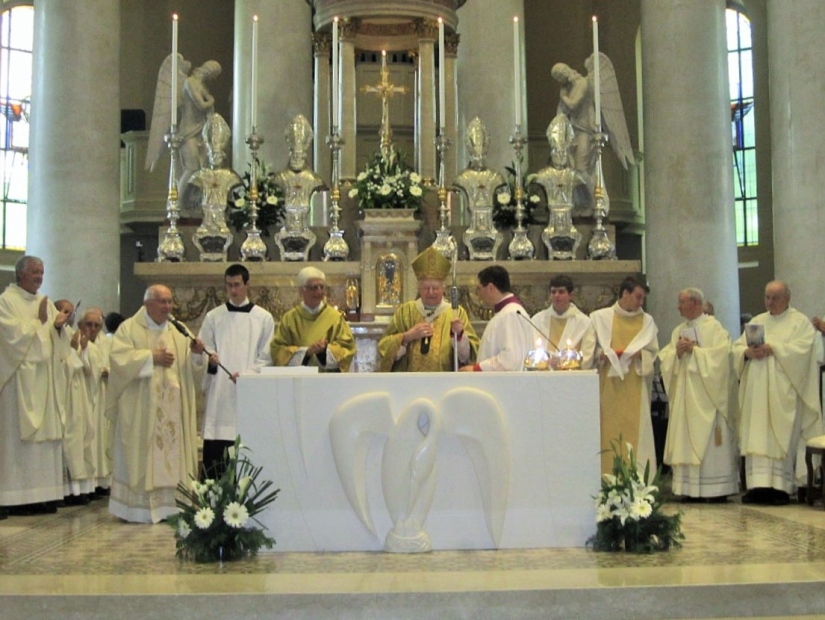 La messa è poi proseguita col rito della dedicazione dell’altare, a partire dalle litanie dei Santi fino ad arrivare all’illuminazione a festa dell’altare e della chiesa tutta.