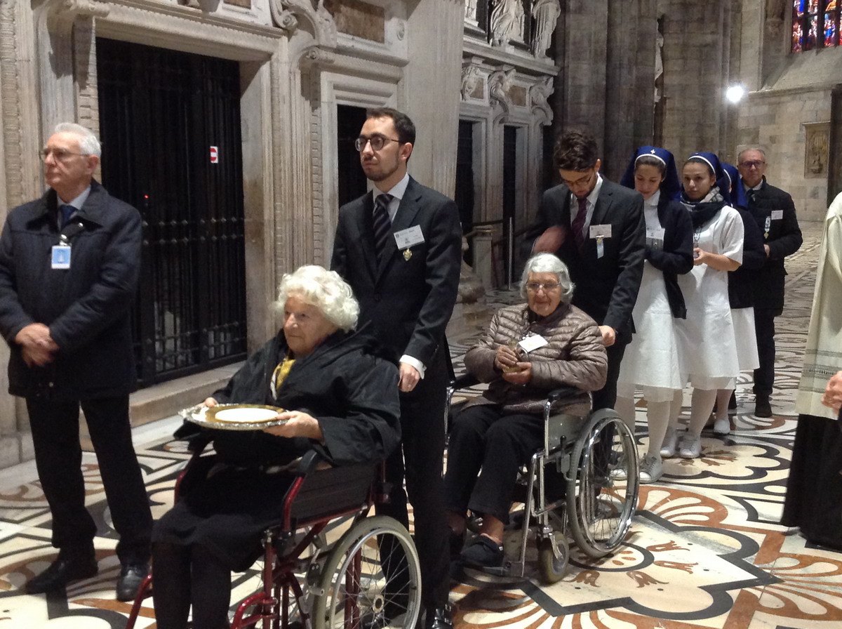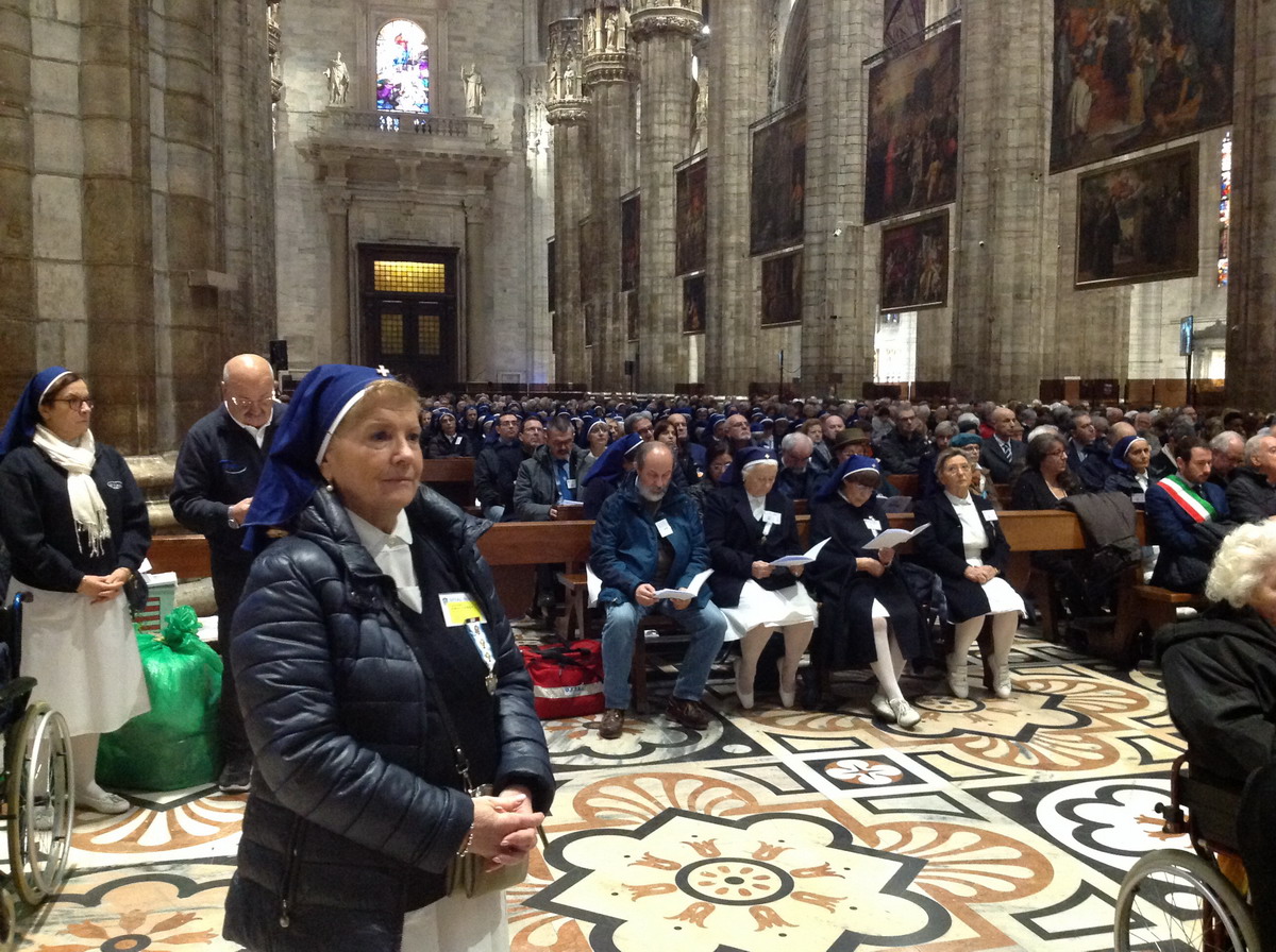 Oggi i soci della Sezione sono 5400, tra malati e volontari impegnati nel sostegno alle persone in difficoltà e, naturalmente, nell’attività fondativa, i pellegrinaggi mariani a Lourdes (4 l’anno) a Fatima, Santiago de Compostela e in altri santuari europei, oltre ai viaggi in Terrasanta. E proprio dai luoghi santi, dove si trova con un gruppo di pellegrini, scrive il suo messaggio – letto per l’occasione in Cattedrale dal presidente dell’Oftal Milano, Carlo Spinelli – il presidente generale monsignor Paolo Angelino. Concelebrano 23 sacerdoti, tra cui il vescovo ausiliare monsignor Erminio De Scalzi, il vicario episcopale per la Città di Milano, monsignor Carlo Azzimonti, don Antonio Suighi delegato arcivescovile e i delegati di Vercelli (la sede centrale dell’associazione ecclesiale è a Trino Vercellese), monsignor Sergio Salvini e di Brescia, monsignor Maurizio Finazzi.
