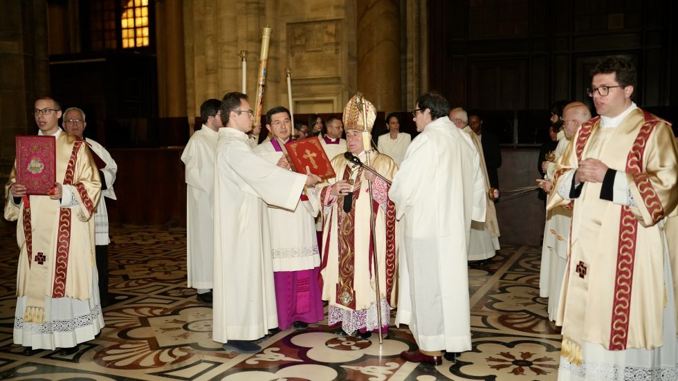 È questo l’invito con cui l’Arcivescovo chiede di vivere la gioia per il Signore risorto nella Veglia di Pasqua, madre di tutte le Sante veglie come la definì sant’Agostino, da lui presieduta in un Duomo in cui si affollano moltissimi fedeli anche stranieri.