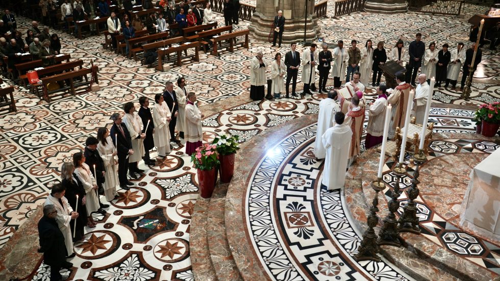 «Come sarà la Chiesa che Dio sta facendo, in questo nostro tempo e in questa nostra terra, come i rivelano i catecumeni? Ecco come è la Chiesa: un popolo che canta l’alleluia, una comunità in festa. Mentre ci sono battezzati che ignorano la gioia di essere cristiani, battezzati che chiedono di essere sbattezzati, e ci sono cristiani imbarazzati di essere cristiani, ecco l’opera di Dio che ha suscitato in questi fratelli e sorelle il desiderio di essere cristiani nella Chiesa cattolica» e nella Chiesa ambrosiana che diviene sempre più «una Chiesa dalle genti».