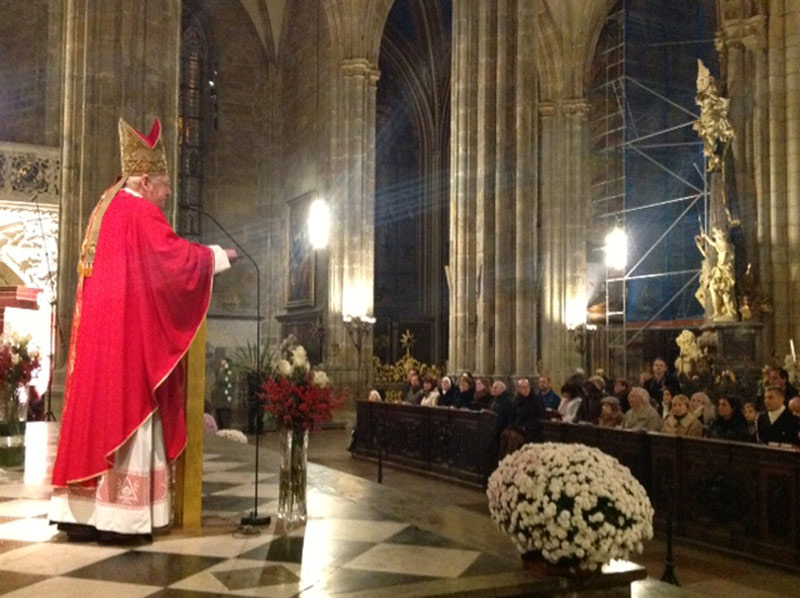 Il cardinale Angelo Scola – insieme all’Arcivescovo di Praga, cardinale Domenico Duka – ha presieduto la Messa nel giorno della memoria liturgica di Santa Cecilia, patrona della musica, particolarmente cara ai cattolici della captale ceca, che, negli anni del regimem proprio in questo linguaggio artistico hanno trovato conforto e potuto esprimere con maggiore libertà la loro fede. Tra i fedeli presenti alla celebrazione nella cattedrale gotica (iniziata nel 1344 per ordine di Carlo IV, ma completata solo nel 1929, a causa della lunga interruzione dovuta alle guerre hussite) molti giovani e diversi italiani a Praga per studio o lavoro.