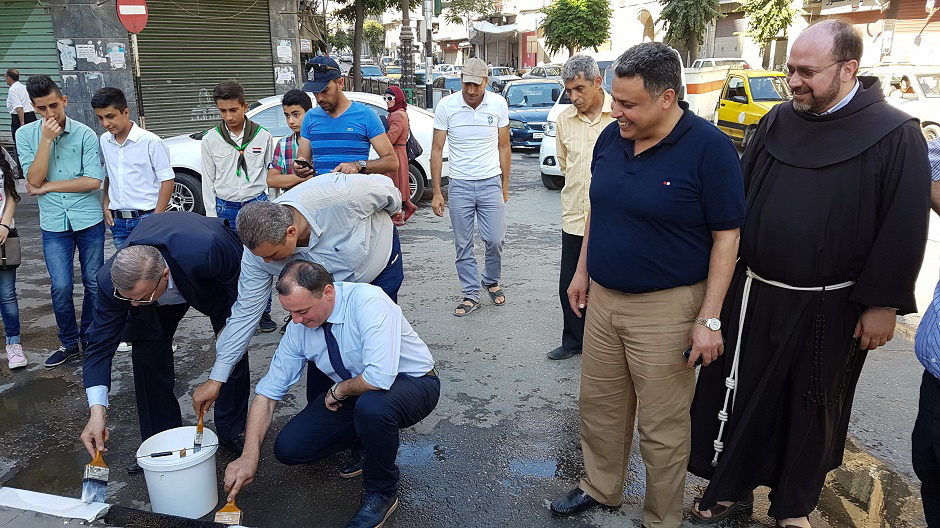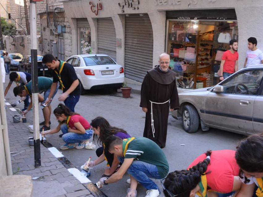 Nell’ultimo mese il centro estivo della parrocchia San Francisco ha raccolto 856 ragazzi (dai 4 ai 15 anni) di tutte le confessioni. I ragazzi hanno cantato, ballato e animato il catechismo. Nati durante la guerra, non hanno conosciuto la pace: le strade disastrate, i bombardamenti e le esplosioni per loro sono ormai la normalità. «Hanno tante ferite – riferisce padre Ibrahim -. Lo si nota dalla violenza verbale: anche i gesti che fanno sono pieni di violenza. Allora serve un punto di riferimento dove possano sentirsi al sicuro e incontrarsi tra loro, scoprire i loro talenti e farli crescere». Sabato 17 giugno, davanti alla chiesa parrocchiale, padre Ibrahim ha inaugurato «Aleppo più bella», un’iniziativa realizzata con la collaborazione del Governatore, del Sindaco, del Comune e della Chiesa latina, e concretizzatasi nella verniciatura dei bordi dei marciapiedi: la prima pennellata è stata data dalle stesse autorità. Tutti i giovani della parrocchia, insieme a uomini e donne (più di 200 persone), «armati di pennelli, secchielli e vernice – dice ancora padre Ibrahim -, con grande entusiasmo e zelo, sono andati alla conquista della città per renderla più bella».
