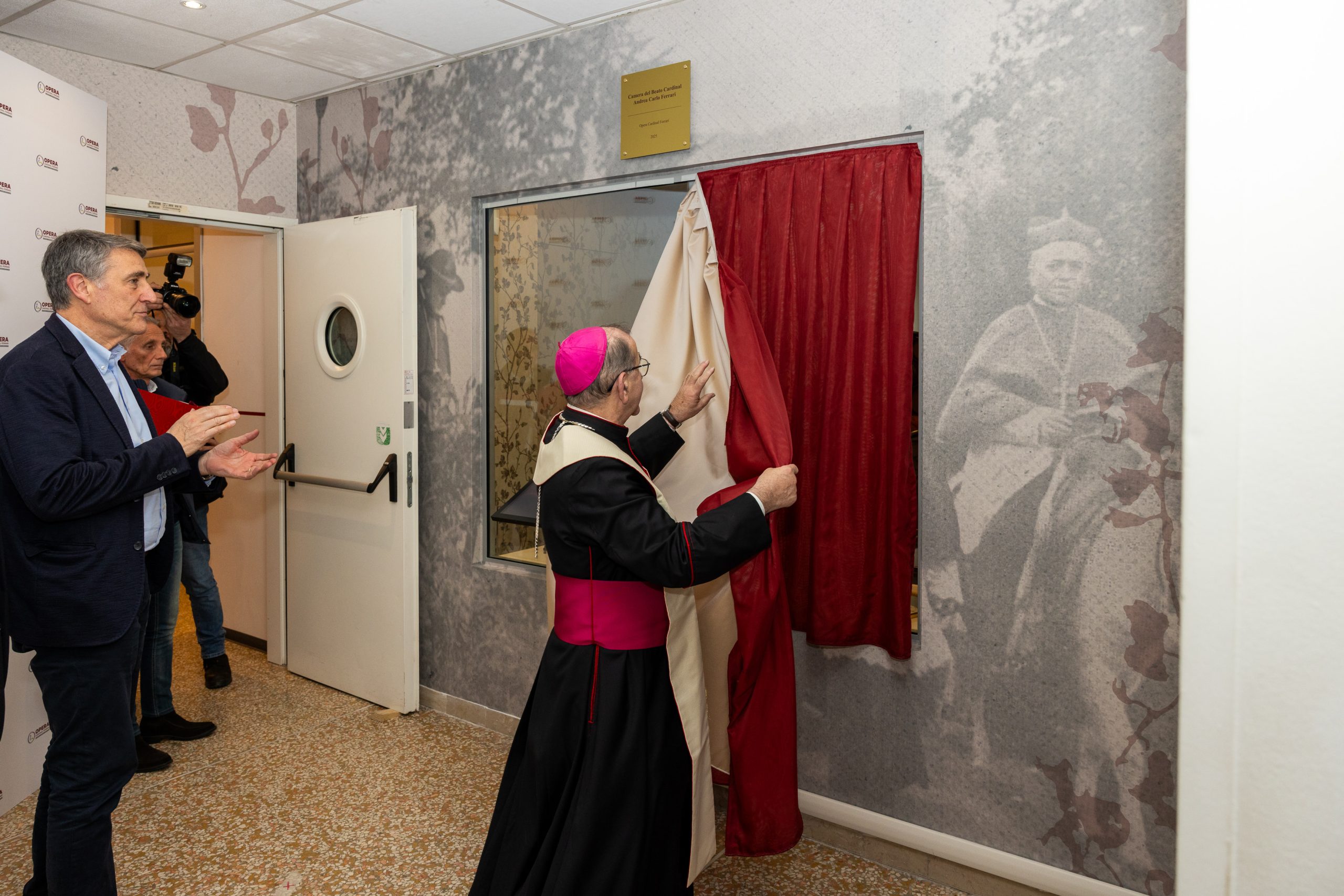 Come ha evidenziato il presidente dell’Opera Cardinal Ferrari, Luciano Gualzetti, dando il benvenuto con volontari, dipendenti e responsabili dell’ente, all’Arcivescovo che ha visitato e benedetto la stanza. Presenti, tra molti altri che non hanno voluto mancare all’evento a lungo atteso, monsignor Giuseppe Vegezzi, vicario episcopale per la Zona pastorale I e ordinario della Compagnia di San Paolo (pure fondata dal Cardinale), monsignor Carlo Azzimonti, Moderator Curiae e amministratore della Compagnia stessa che ha accompagnato la realizzazione del progetto relativo alla stanza. Camera che, finalmente – grazie alla donazione di oggetti e paramenti da parte della Compagnia -, rende alla città un’importante memoria riunita in un luogo tanto significativo come la sede dell’Opera.