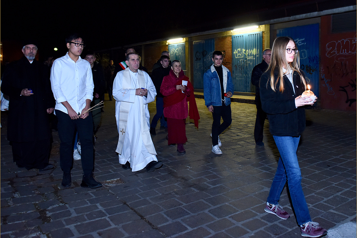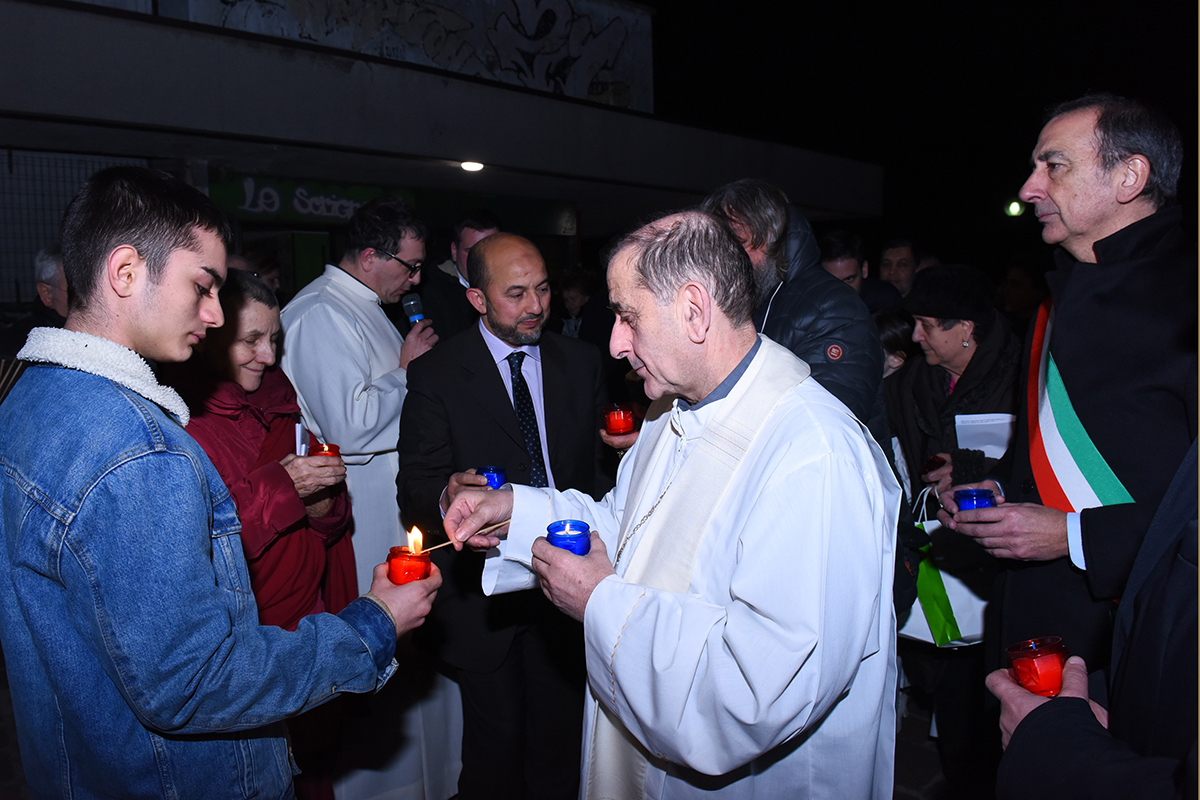 Infine, in processione, tutti raggiungono la piazza, tra i palazzoni popolari di via dei Missaglia dove, dalla lampada benedetta da papa Francesco il 16 gennaio scorso, si accendono tante fiammelle che vengono portate dai fedeli nelle proprie case ed esposte ai balconi.