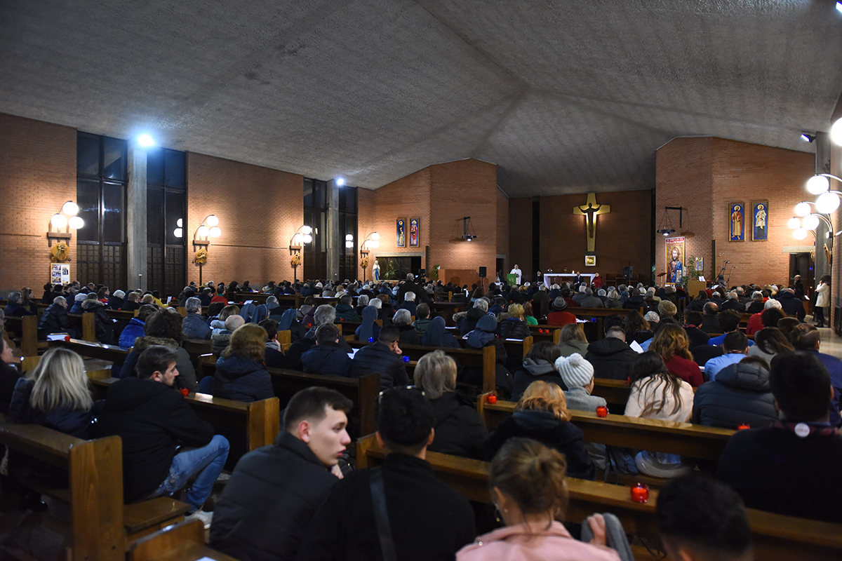 Dopo l’esecuzione di suggestive e antiche sonorità della tradizione ebraica sefardita, l’ingresso nella chiesa, in processione, di esponenti di quattro religioni (tra cui l’Arcivescovo), il saluto di don Giovanni Salatino – vicario parrocchiale e incaricato della Pastorale giovanile del Gratosoglio – e la lettura di uno stralcio del Documento sulla fratellanza e la pace, firmato da papa Francesco e dall’iman di Al-Azhar, Ahmad Al-Tayyeb, si avvia la Veglia. Tra i canti risuonano le voci delle fedi, ciascuna delle quali chiamata a commentare alcuni brani delle proprie Scritture sacre.