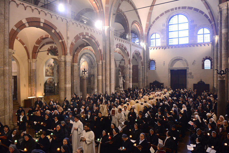 Nella Giornata Mondiale che la Chiesa dedica, appunto, alla Vita consacrata – quest’anno è la diciottesima –, nella basilica di Sant’Ambrogio arrivano da tutta la diocesi molte centinaia di suore, religiosi, monaci, consacrate e consacrati laici.