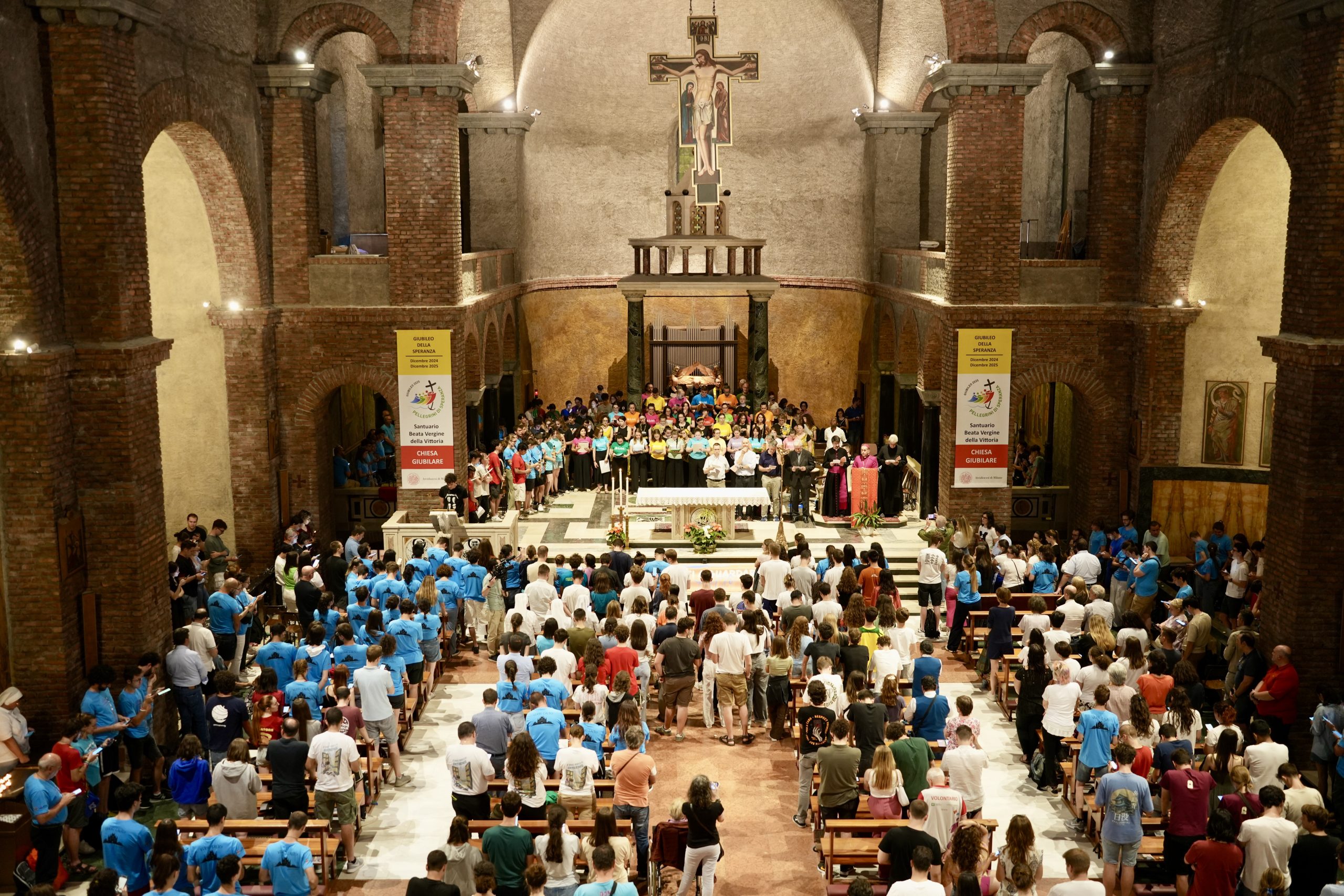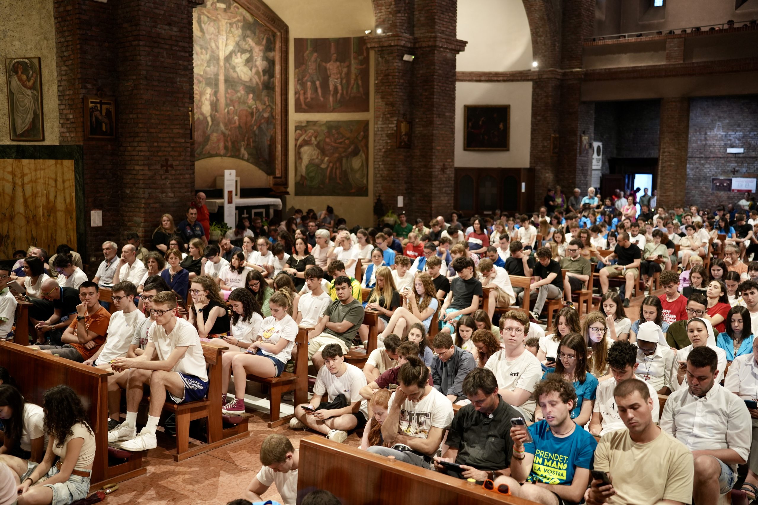 Santuario gremito, come non mai, dai giovani, seduti ovunque e fino al matroneo per il momento del “mandato”, aperto dal saluto dell’assessore del Comune di Lecco, Emanuele Tosi, in rappresentanza del sindaco, Mauro Gattinoni, che ha augurato ai ragazzi di «vivere sempre un’esperienza di relazioni vere».