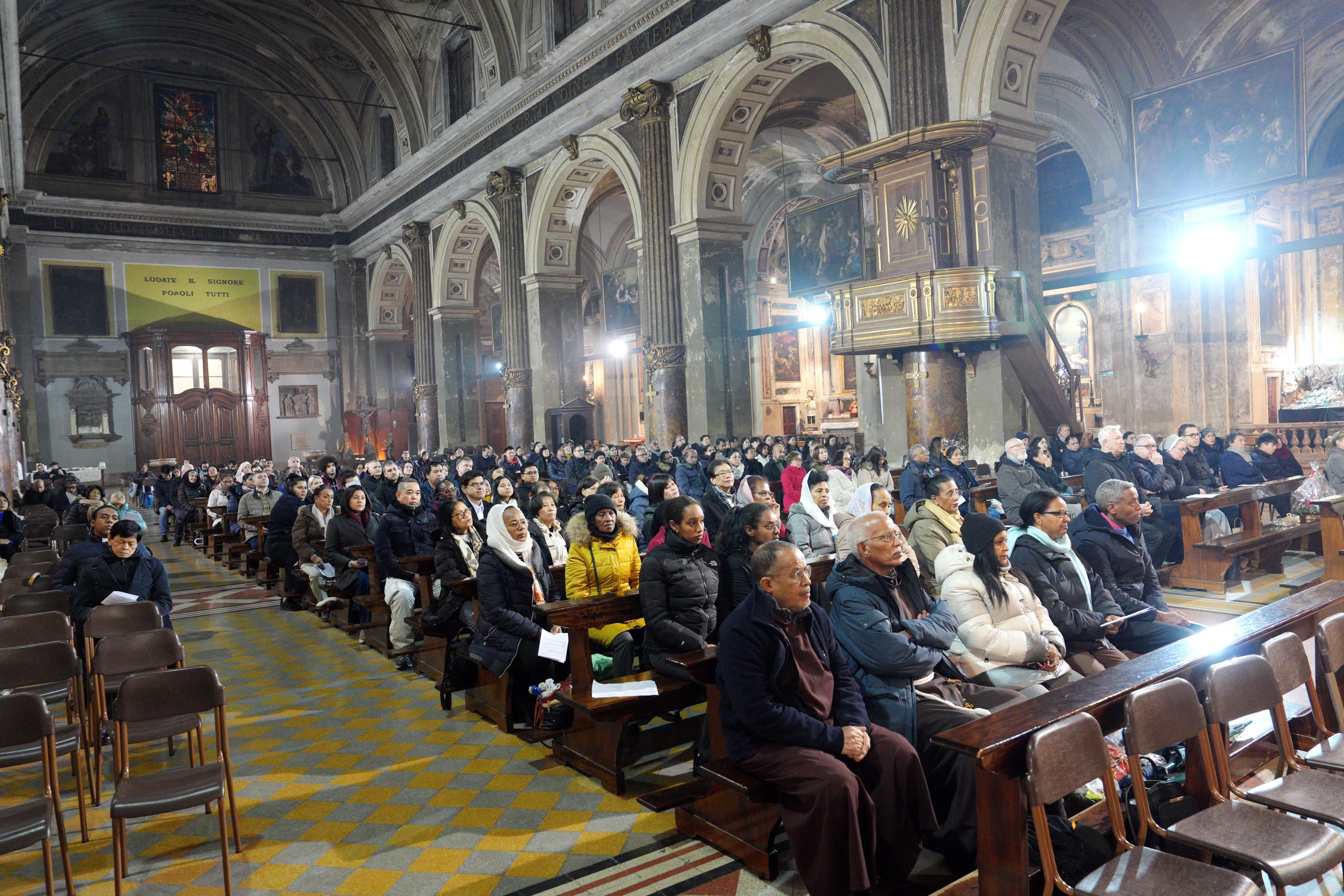 «Se venite da Paesi che sono in guerra, che soffrono a causa di questa assurda cattiveria, come potrete essere solidali con la gente del vostro Paese? – conclude monsignor Delpini -. Maria dice che anche in questa situazione si può cantare il Magnificat perché il canto degli umili è la smentita ai progetti superbi. Dobbiamo essere presenti dappertutto con quella fonte di gioia invincibile, con quella speranza che non teme nulla, perché se ci lasciamo vincere dallo scoraggiamento, dalla rabbia, dal risentimento, dal ripiegamento su noi stessi, se ci lasciamo vincere dalla tristezza, come sarà possibile il Signore dimori in mezzo a noi?».