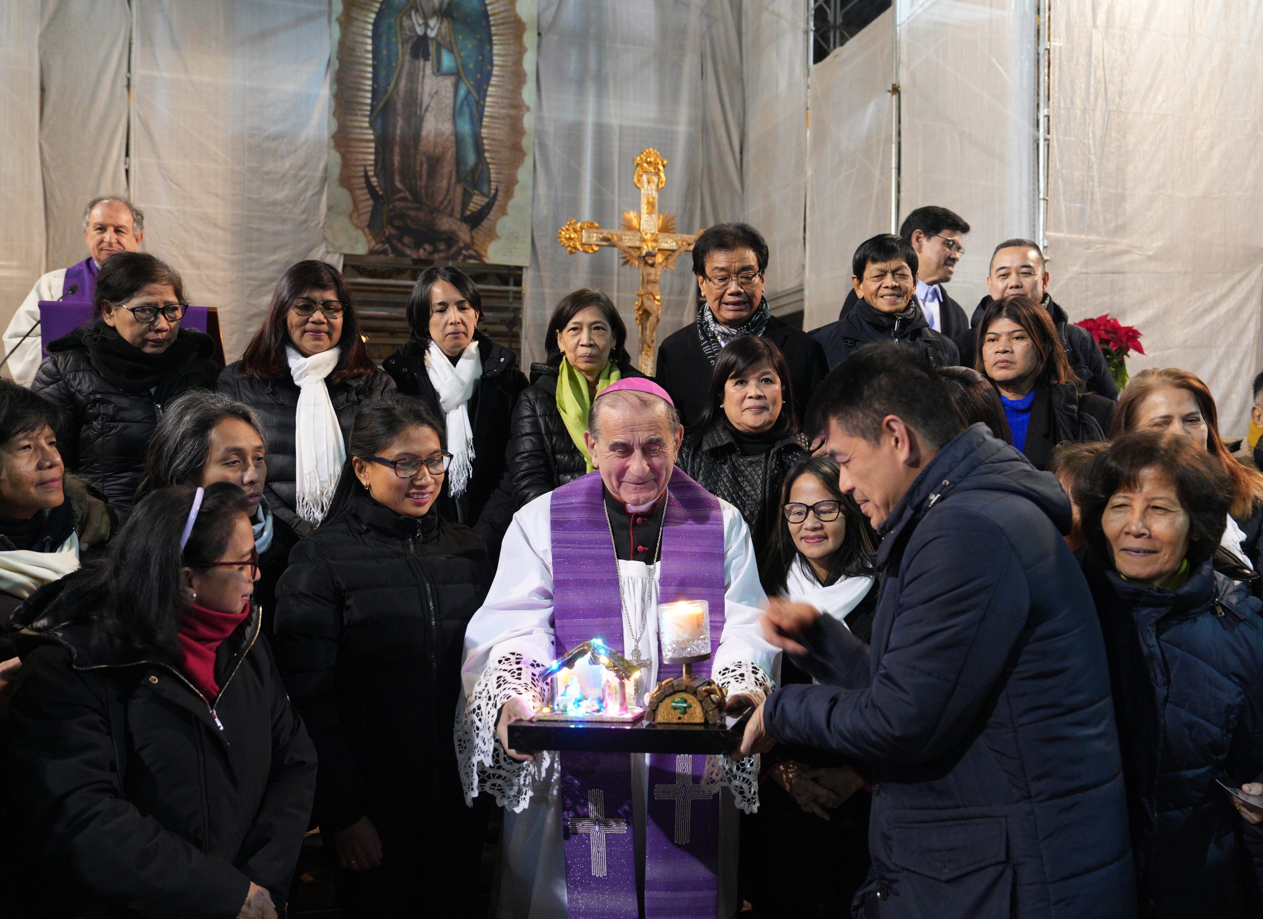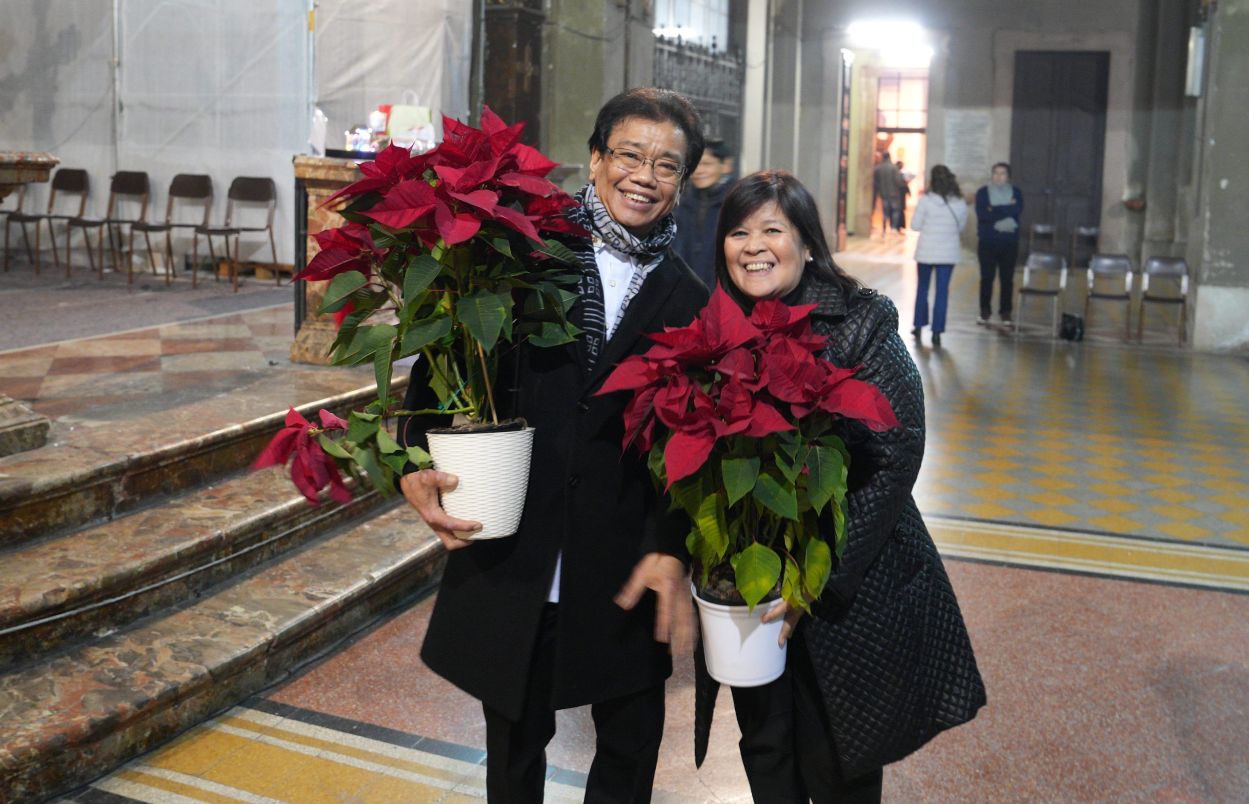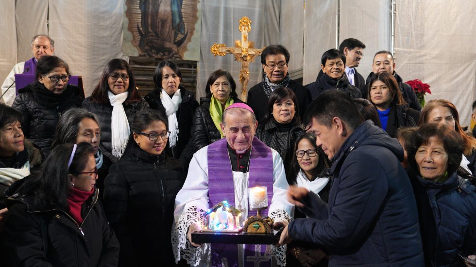 Poi, il saluto e i doni delle singole comunità – per lo più cesti di prodotti tipici delle loro terre di origine e piccoli oggetti natalizi – portati all’Arcivescovo che consegna a tutti l’immaginetta natalizia, leggendo la preghiera composta per l’occasione.