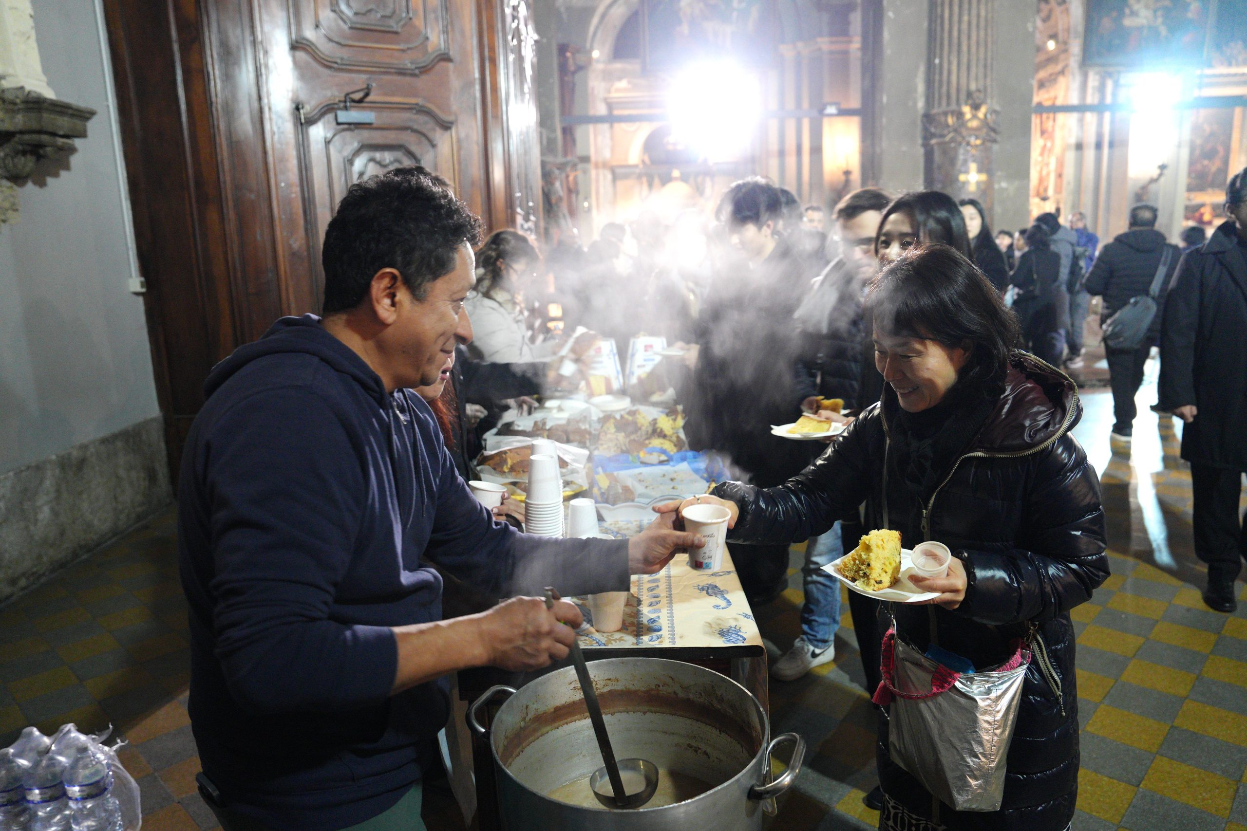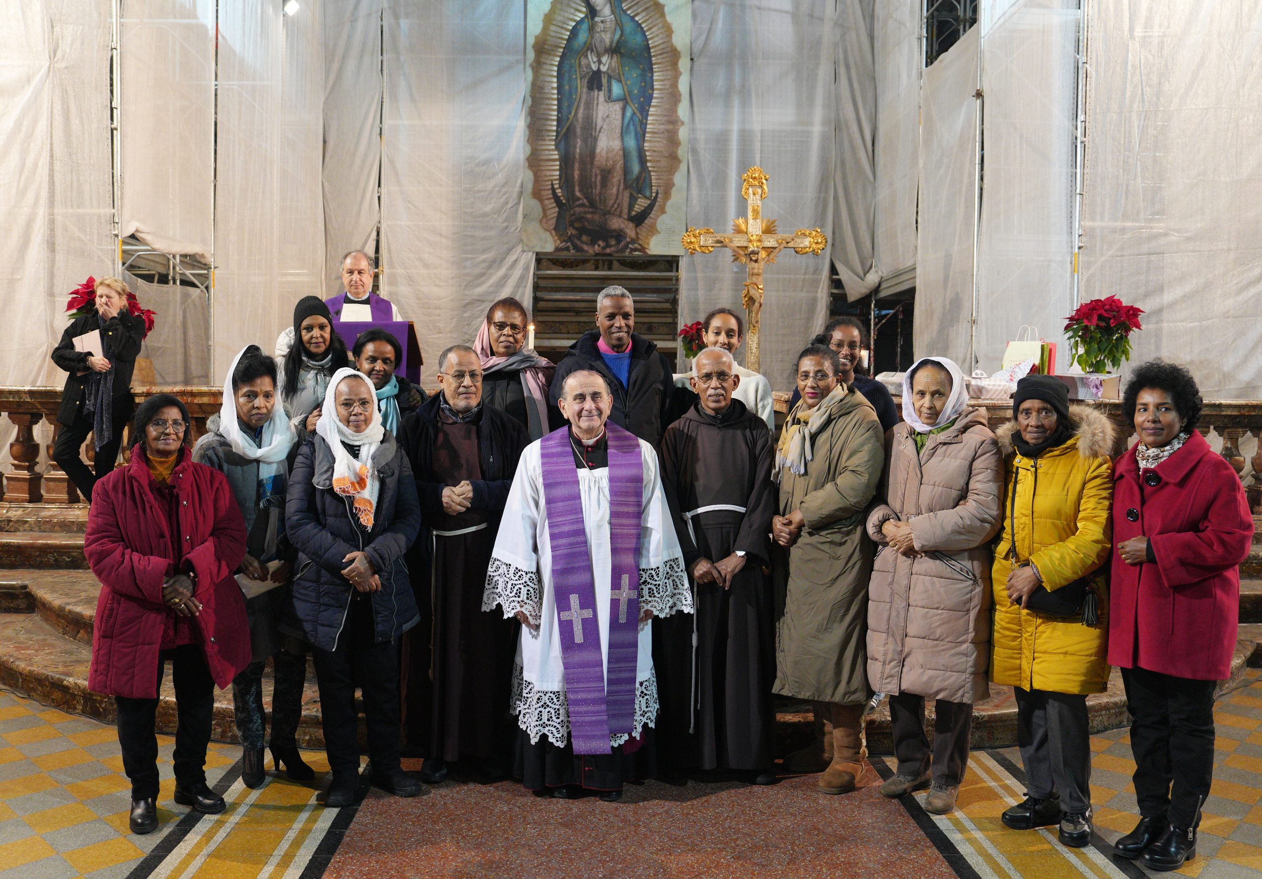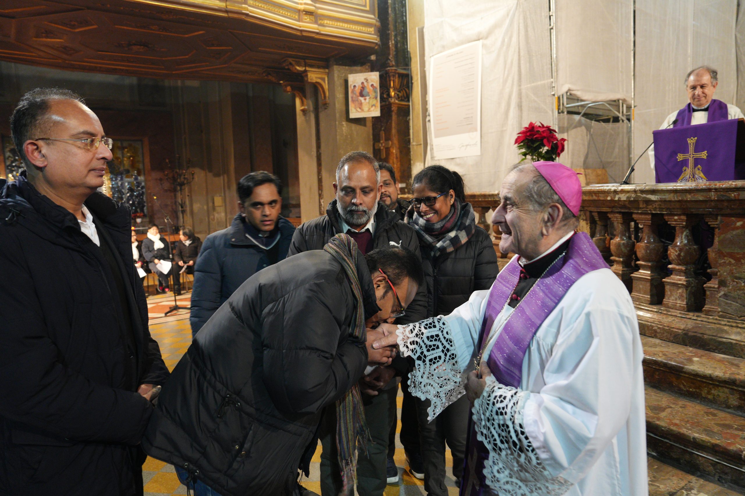 Dal canto del Magnificat di Maria, appena proclamato nel primo capitolo del Vangelo di Luca, si avvia la breve riflessione dell’Arcivescovo: «Sappiate che il Signore ha guardato all’umiltà della sua serva e, dunque, cantate il Magnificat se siete umili e poveri, se venite da Paesi che soffrono per questa povertà. Sappiate che il Signore si cura di voi, se vi sentite fragili di fronte ai potenti e umiliati di fronte ai superbi, sappiate che il Signore depone i potenti dai troni e innalza gli umili e, dunque, cantate, abbiate dentro di voi quella gioia che permette di cantare, non perché siete potenti, ricchi e sazi, ma perché siete amici di Dio».