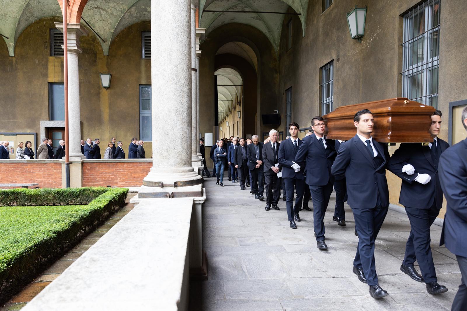 Il corteo al seguito del feretro del Rettore nel chiostro