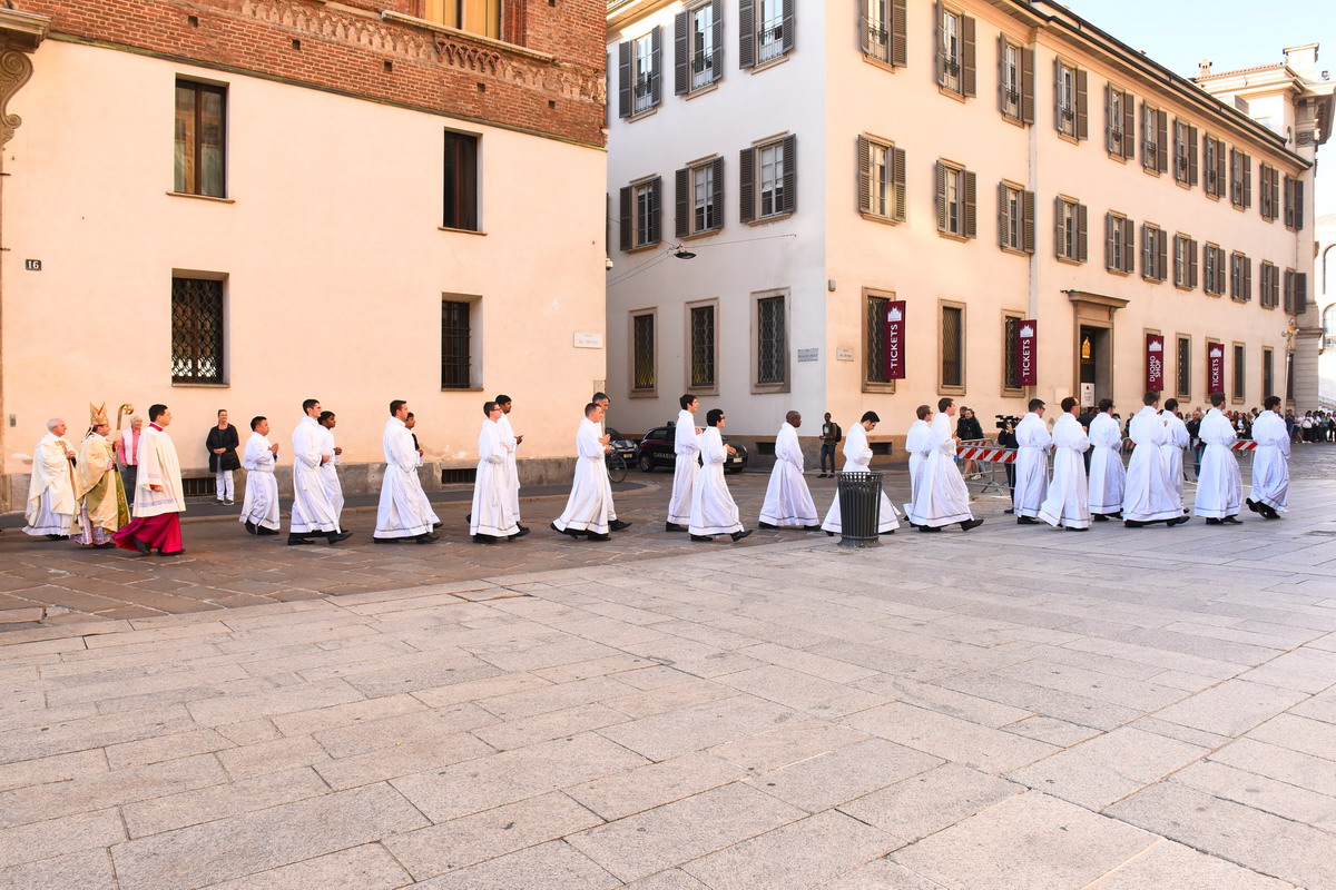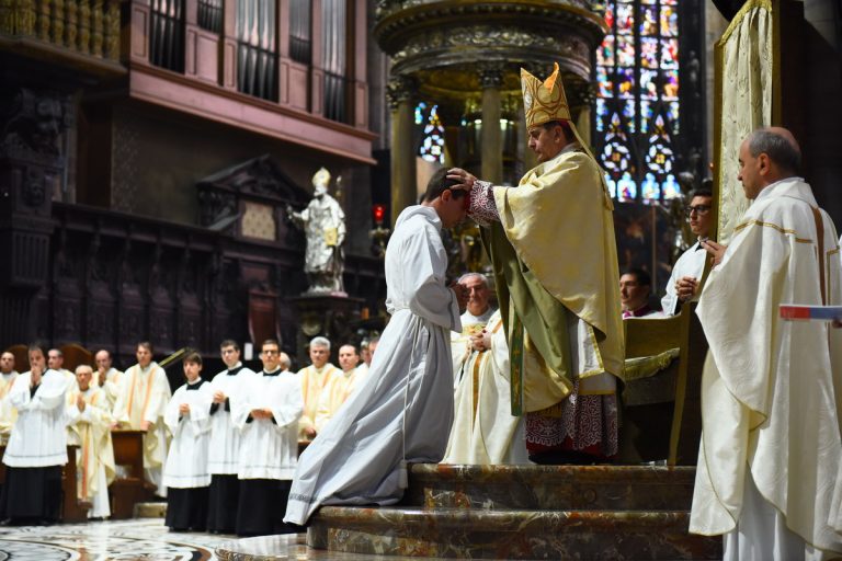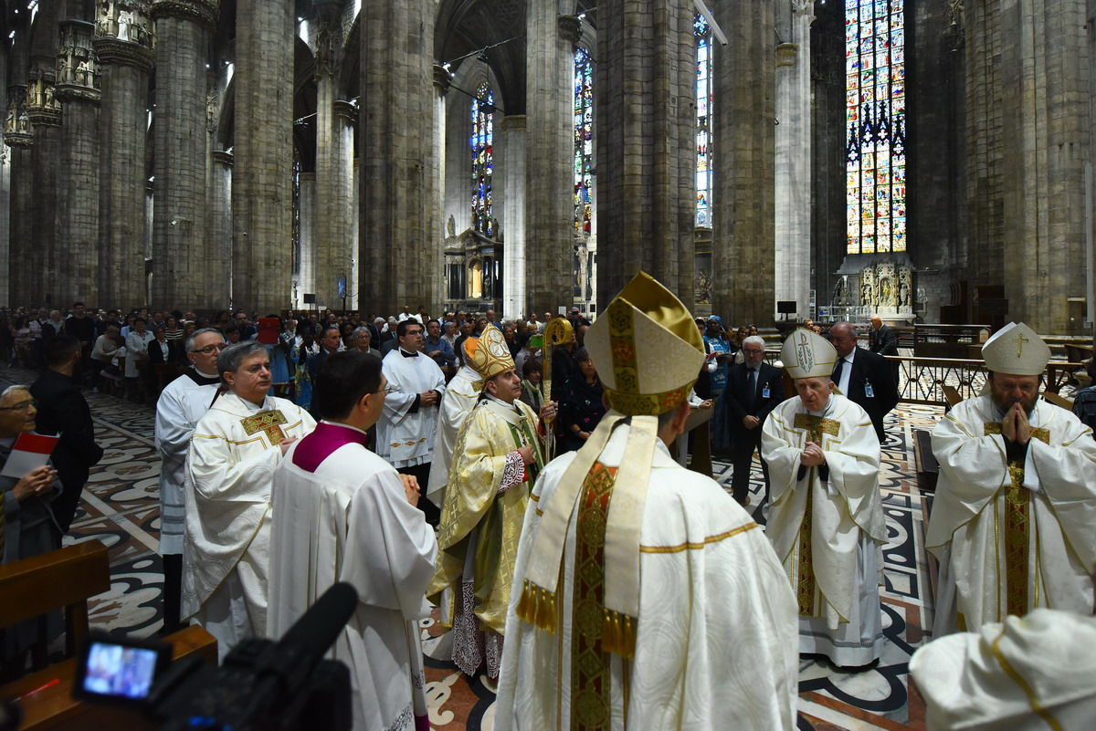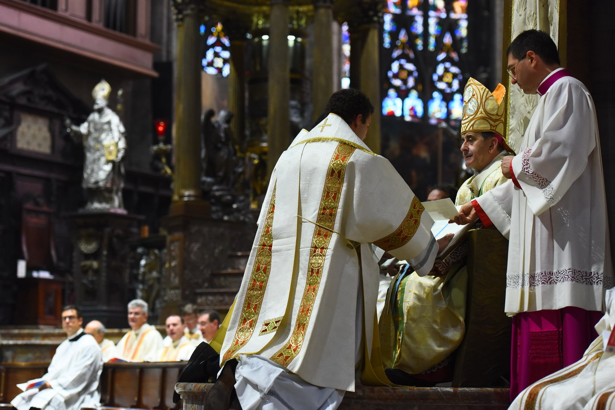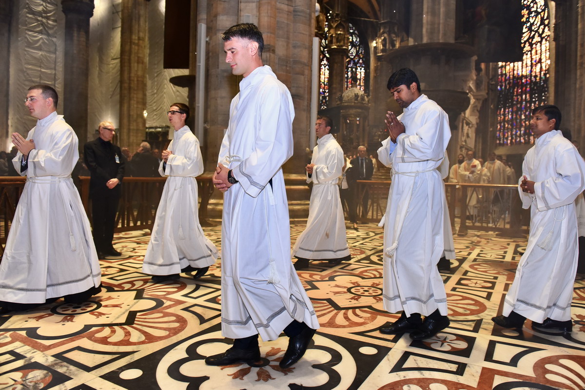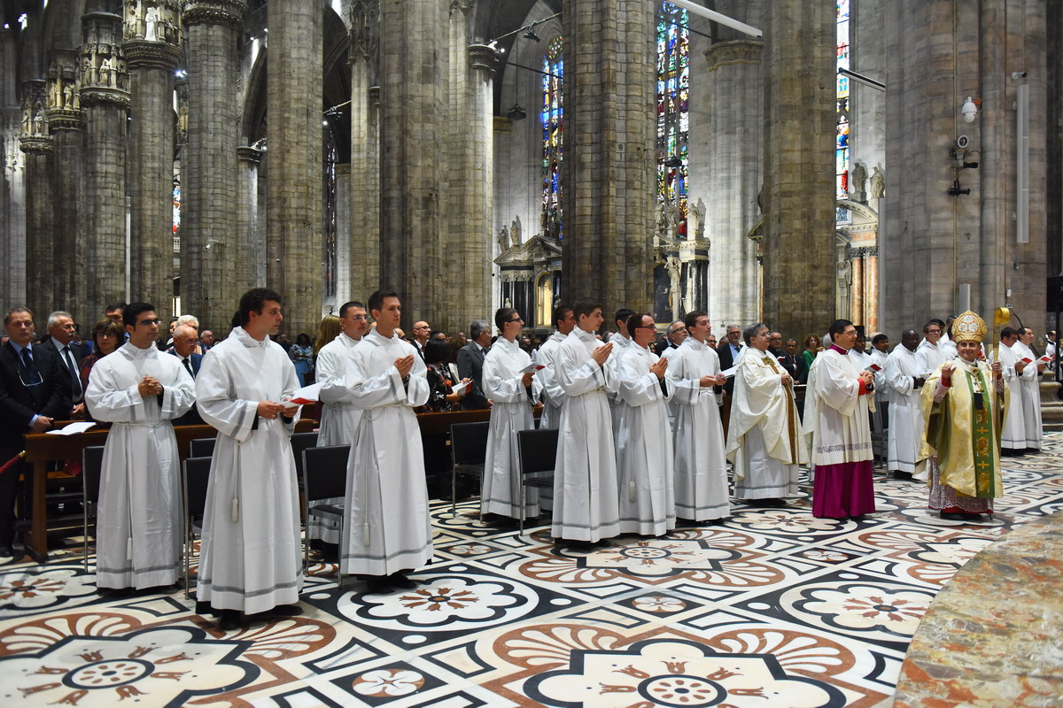 In un Duomo gremito – dove trovano posto migliaia di fedeli, i parenti degli Ordinandi, gli appartenenti alle loro Comunità di origine, tanti giovani e i seminaristi -, la voce di monsignor Delpini è chiara nell’indicare uno stile di cammino. Accanto al vescovo Mario concelebrano, in altare maggiore della Cattedrale, i Vescovi ausiliari, i Vicari episcopali, il rettore del Seminario, monsignor Michele Di Tolve con i Superiori, i Canonici del Capitolo Metropolitano, i Superiori del Pime.