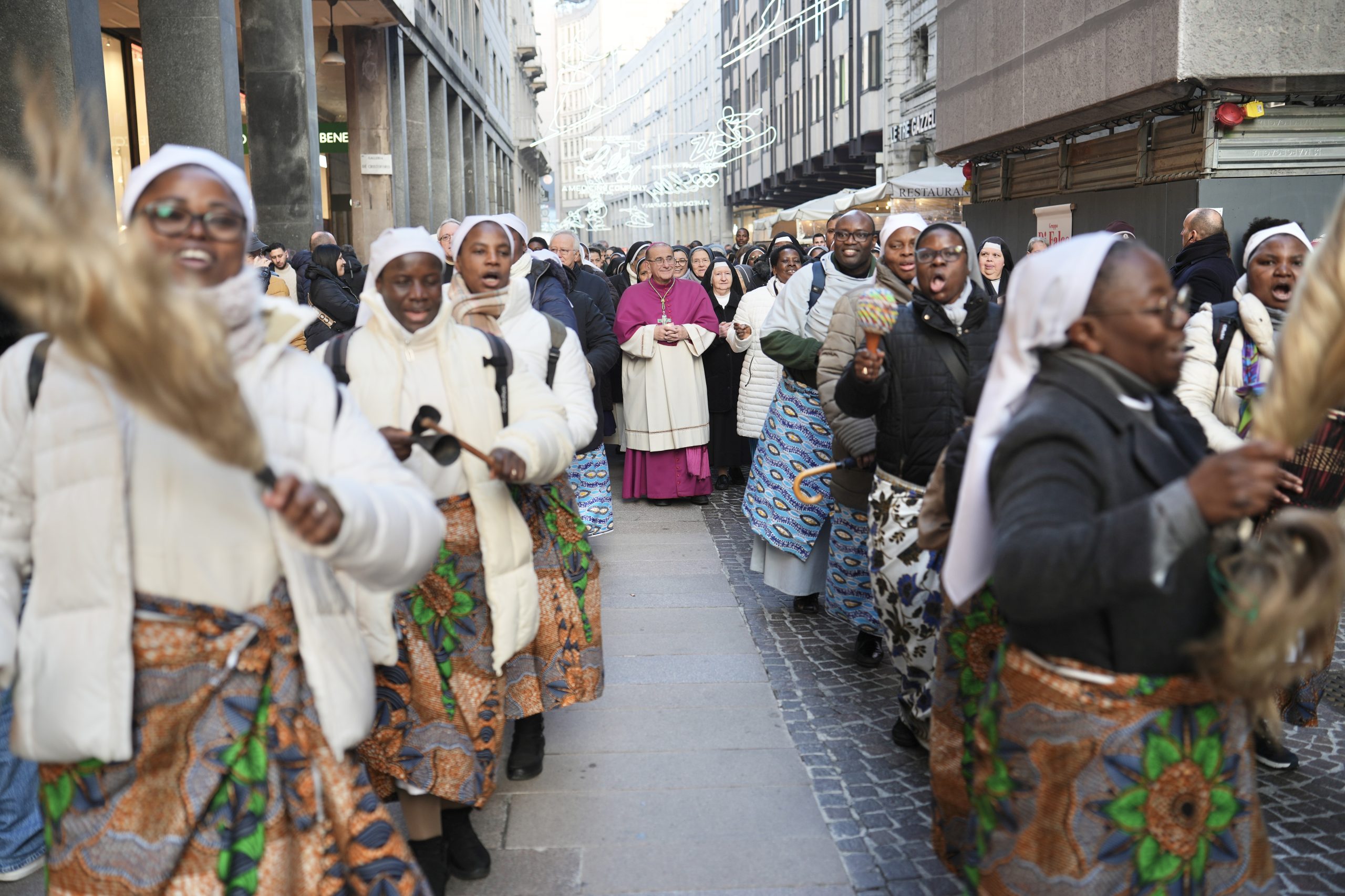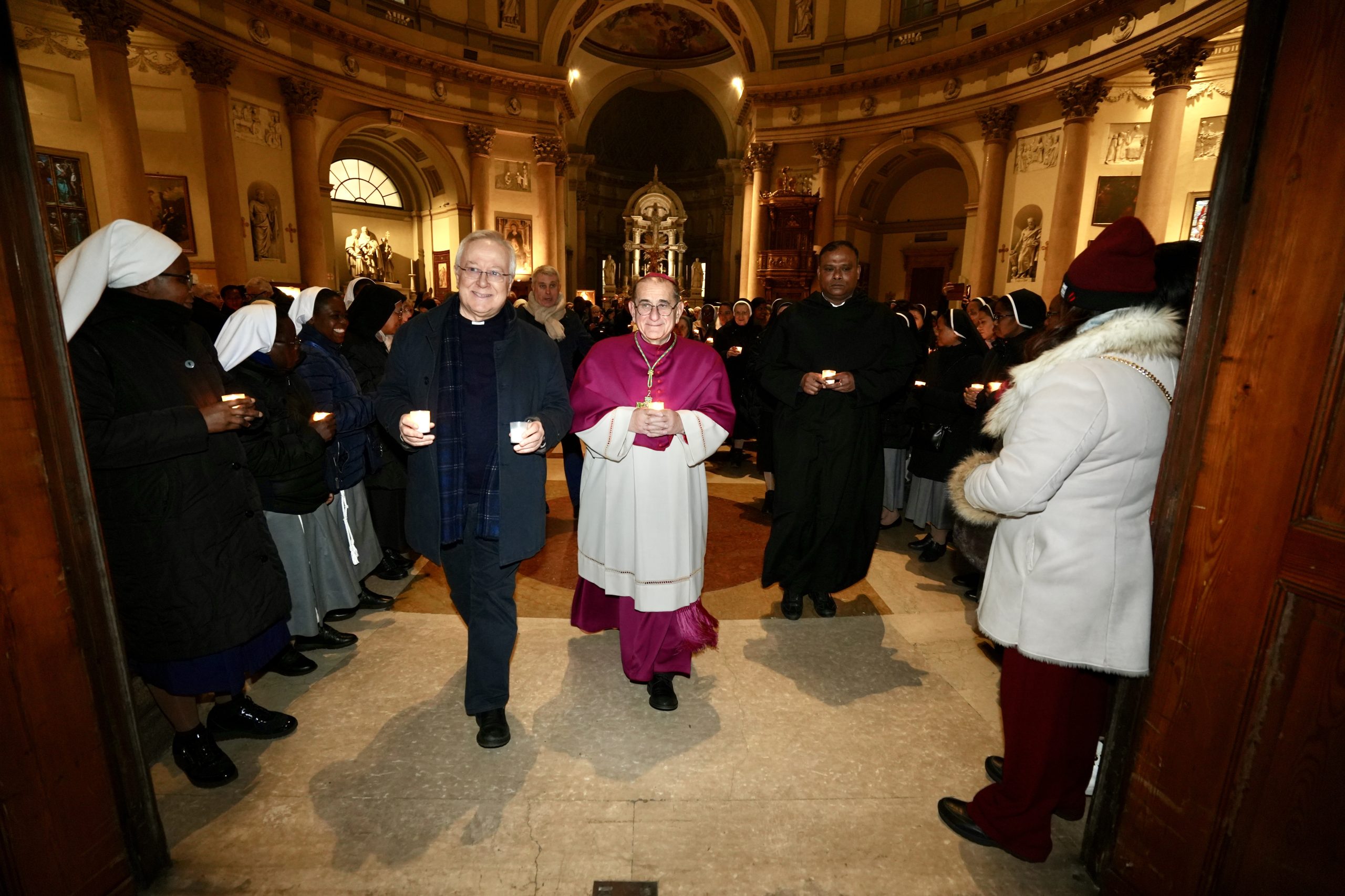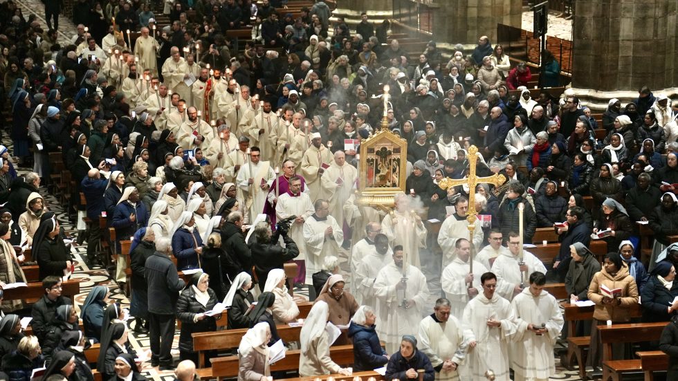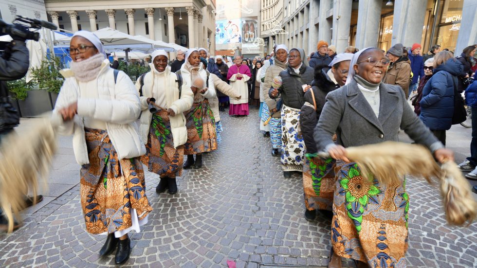 Alla vigilia della Festa della Presentazione del Signore, XXX Giornata mondiale della Vita consacrata, nel cuore di Milano si mostra il volto più bello e gioioso del donarsi interamente al Signore, consacrandosi a Lui nelle diverse forme oggi presenti anche nella Chiesa ambrosiana. Prima della celebrazione presieduta in Duomo dall’Arcivescovo, si ripete infatti la processione che arriva in Cattedrale da San Carlo al Corso – dove si prega anche attraverso le sonorità etniche e travolgenti del Coro Elikya diretto da Raymond Bahati – e percorrendo un affollatissimo corso Vittorio Emanuele che saluta il passaggio con simpatia e curiosità. A guidare la processione, ancora con canti e balli tipici della tradizione di alcuni Paesi africani, le suore del Togo, del Benin e del Congo, seguite da una nutritissima rappresentanza di consacrati e consacrate che, in Diocesi ammontano complessivamente a quasi 6000 unità: tra questi, 850 religiosi e 4 mila religiose, circa 530 consacrati/e “secolari”, 125 sorelle dell’Ordo Virginum e 33 dell’Ordo Viduarum, 68 Ausiliarie diocesane e diverse Società di Vita apostolica.