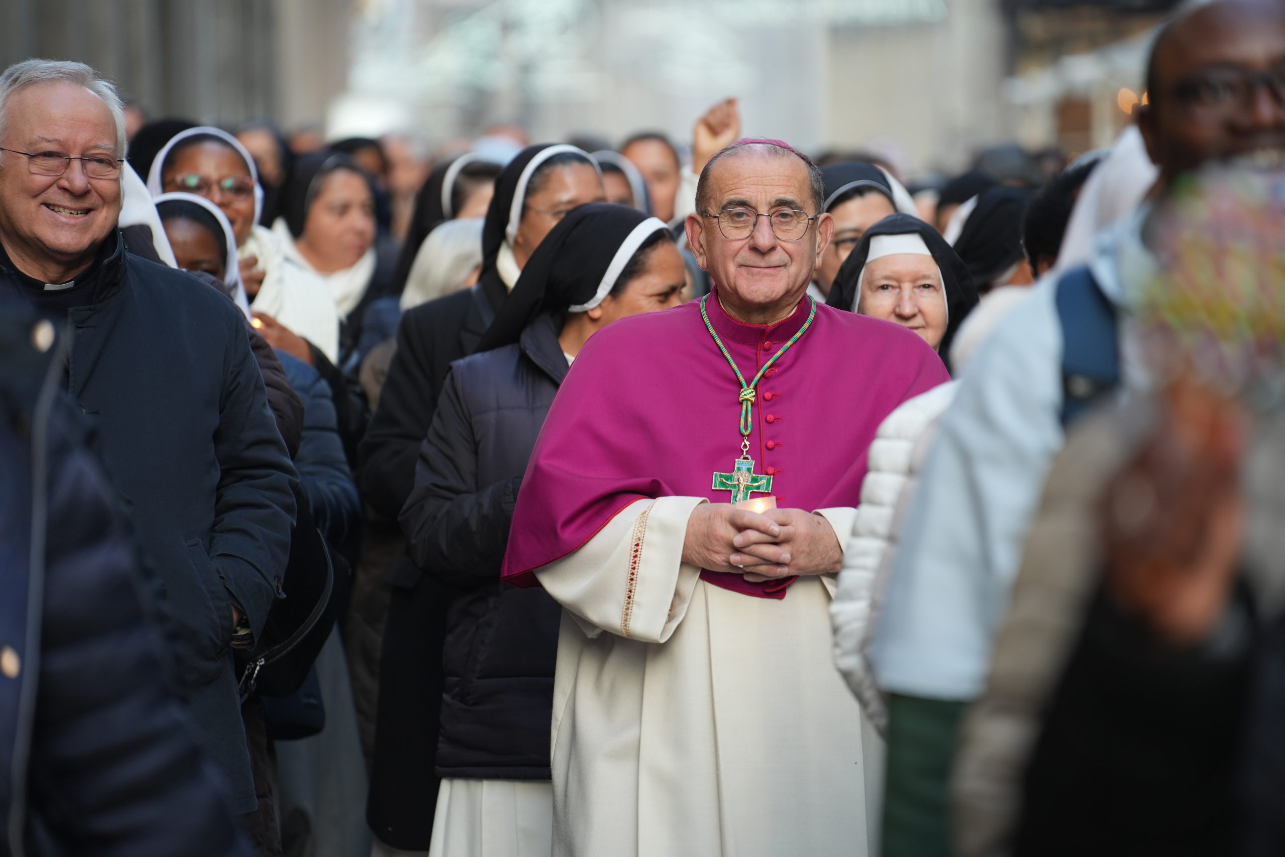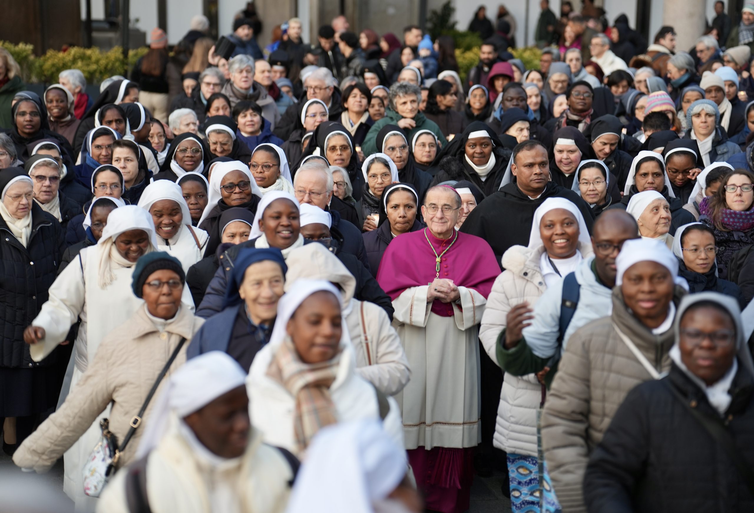 «La nostra Diocesi ospita genti illuminate dalla presenza di Gesù, oltre le proprie abitudini, oltre le differenze, la complessità delle lingue e delle culture. Le suore e consacrate, tutti i fratelli e sorelle da qualunque Paese vengano, possono essere questa rivelazione di Dio: genti che si incontrano con un incontro che fa crescere l’amore e la conoscenza di Dio. Ogni giorno, in ogni situazione è iscritta questa vocazione all’oltre, come lo Spirito dicesse a ciascuno: guarda meglio, oltre le apparenze c’è l’occasione per il bene possibile, per la risposta stupita e grata alla vocazione oltre il presente, il calcolabile e il prevedibile. Oltre la morte, la speranza, la vita, la comunione che rende felici».