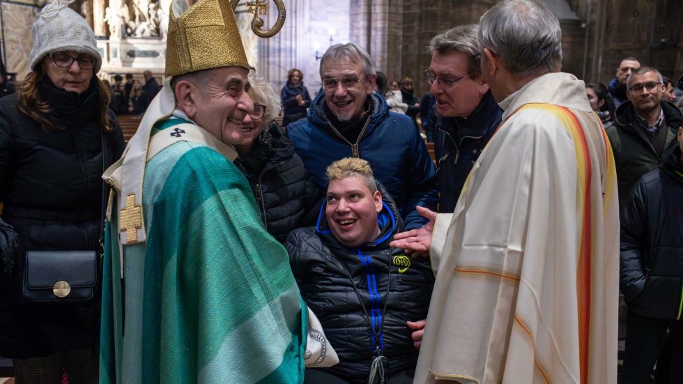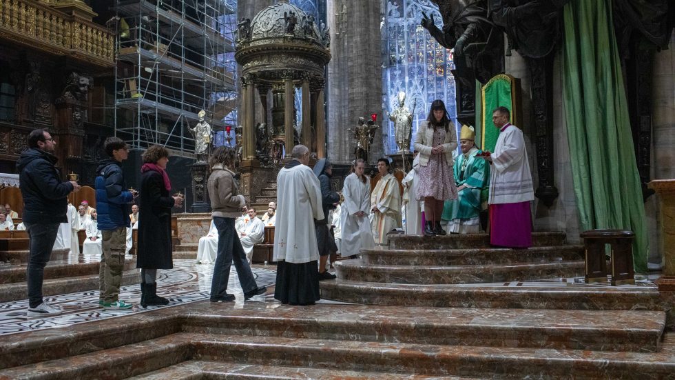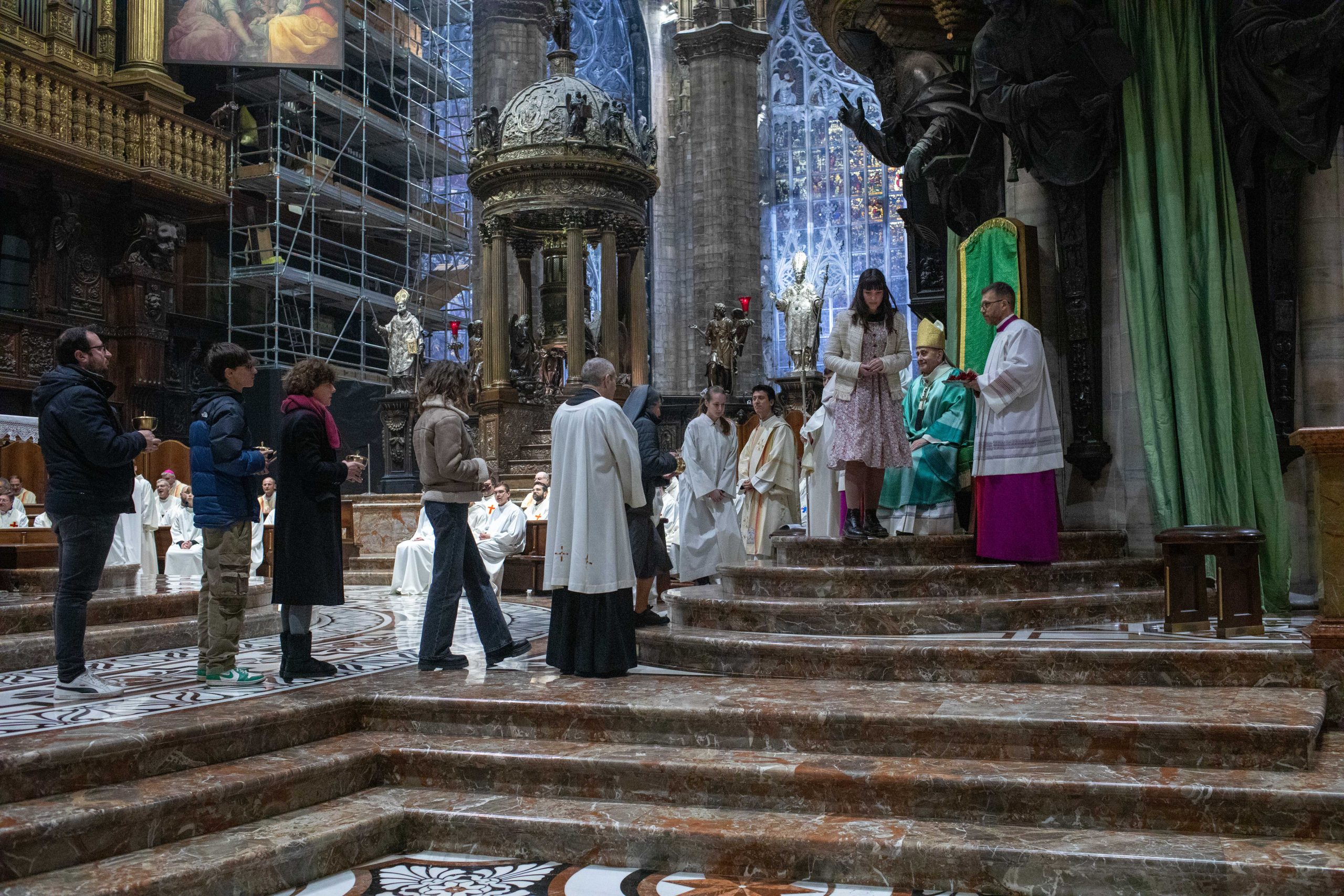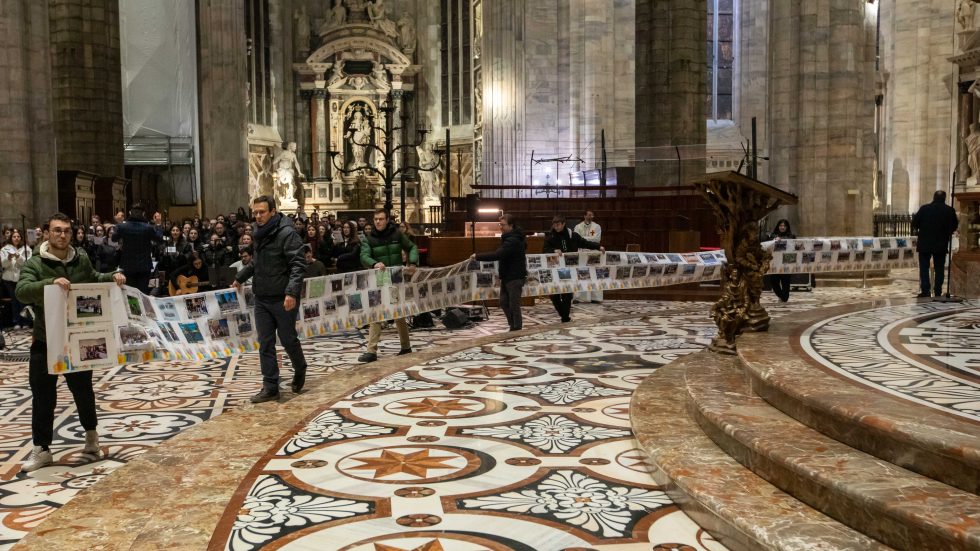 E scatta subito l’applauso come quando, poco dopo, viene presentato ai concelebranti ai piedi dell’altare maggiore il grande striscione di oltre 20 metri che, interamente srotolato, mostra le più di cento fotografie di altrettanti oratori consegnate all’inizio della celebrazione. «L’oratorio non deve essere come una specie di prigione: un prete va in parrocchia per tutta la comunità con l’intera missione che il vescovo gli affida, anche con la presenza benedetta nella scuola. Ringrazio tutti coloro che si prendono cura degli oratori e che interpretano la vocazione dell’oratorio a essere un contesto educativo da cui, a un certo punto, uscire per vivere la vita, in tutti gli ambienti, da cristiani». Questa l’ultima consegna dell’Arcivescovo.