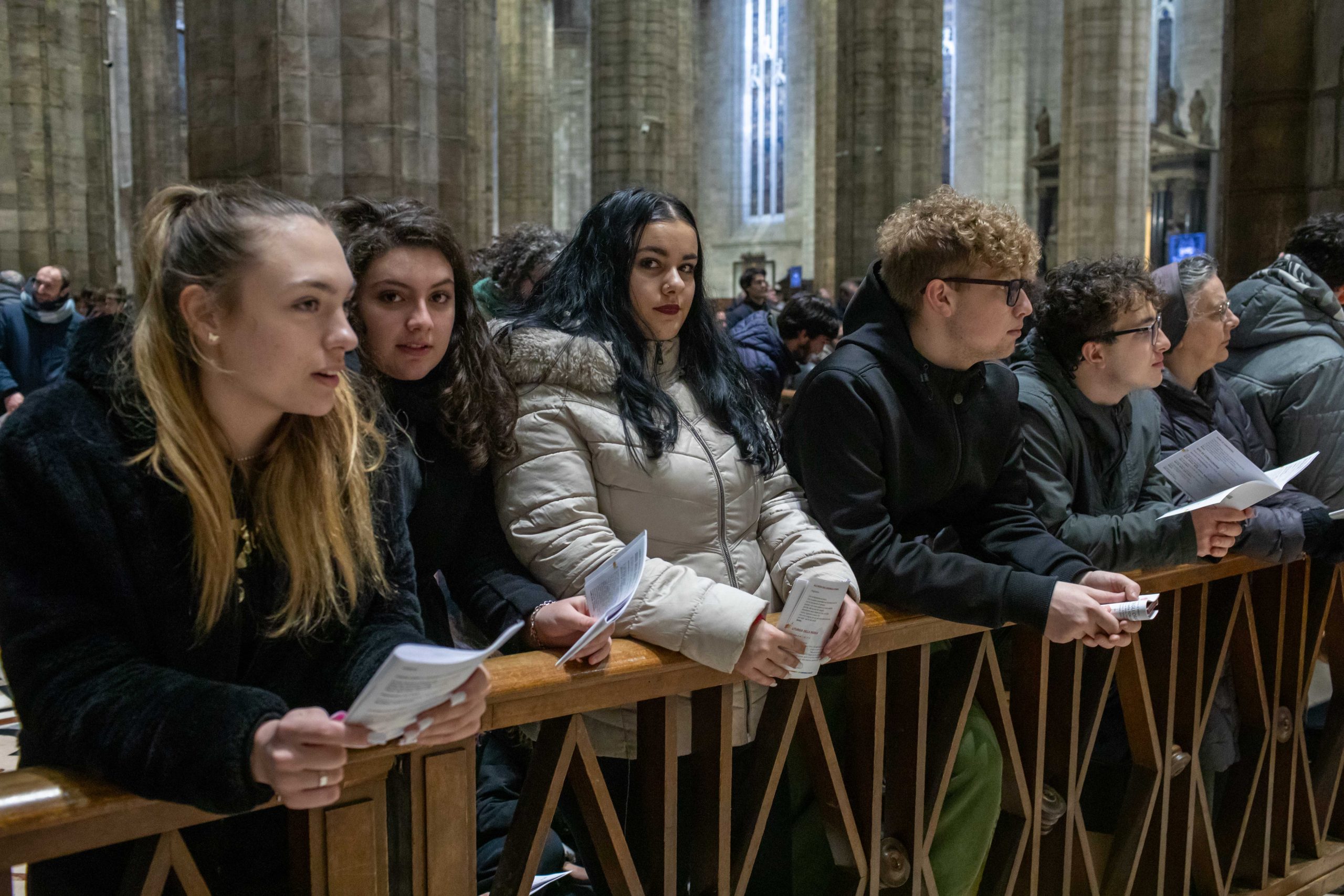 Le file di ragazzi che si allungano sul sagrato per poter entrare in Duomo, la consegna all’ingresso, con orgoglio, della foto del proprio oratorio nelle mani dei Vicari episcopali di Zona, l’allegria contagiosa all’interno della Cattedrale piena di luce e di gioventù, la gioia di ritrovarsi in migliaia per dire che la realtà degli oratori ambrosiani è più viva che mai.