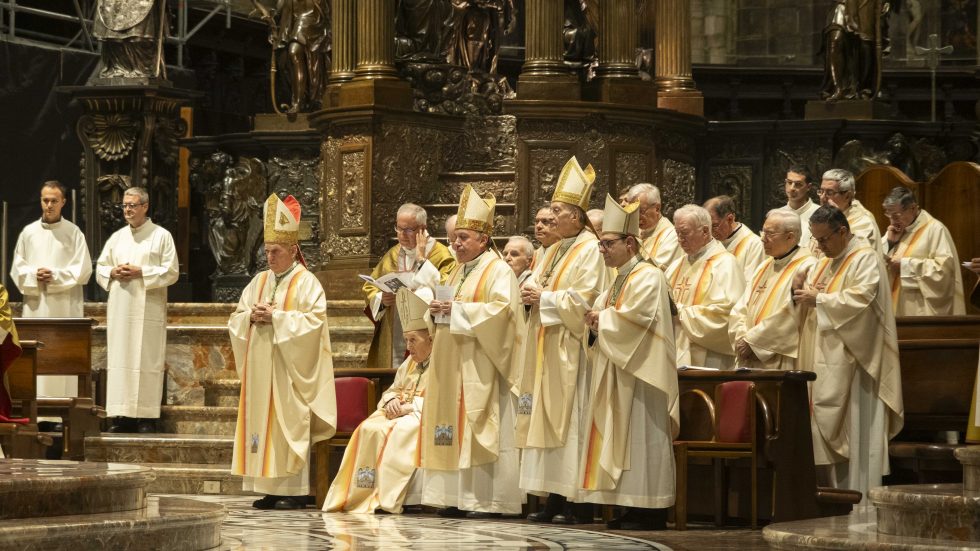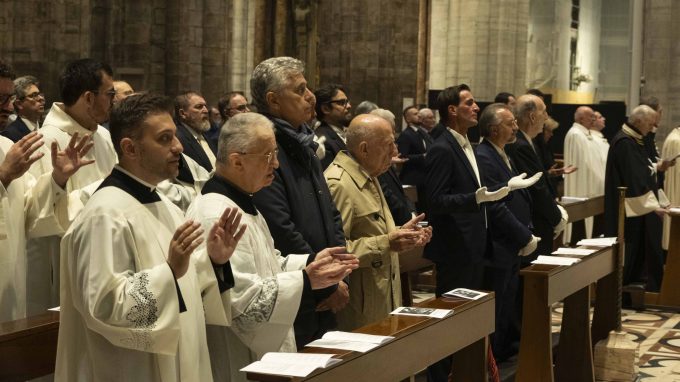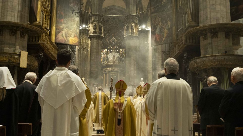 Nella celebrazione vigiliare della solennità di san Carlo Borromeo, copatrono dell’Arcidiocesi di Milano, a indicare le vie da percorrere e gli impegni che attendono la nostra Chiesa, è il suo attuale successore che siede, appunto, sulla cattedra di Ambrogio e Carlo, il vescovo Mario Delpini. Che presiede il Pontificale, in Duomo, dove tanti segni parlano del primo Borromeo: i quadri seicenteschi tra le navate con episodi della vita del Santo, la solennità del rito ambrosiano, la presenza, in altare maggiore, di nove vescovi – tra cui il Vicario generale, monsignor Franco Agnesi e l’abate dell’Abbazia di Santa Giustina in Padova (legata in modo particolare al Borromeo), Giulio Pagnoni -, dei membri del Cem e dei Canonici del Capitolo metropolitano della Cattedrale, ai quali si aggiungono più di cinquanta sacerdoti concelebranti nel transetto di San Giovanni Bono.