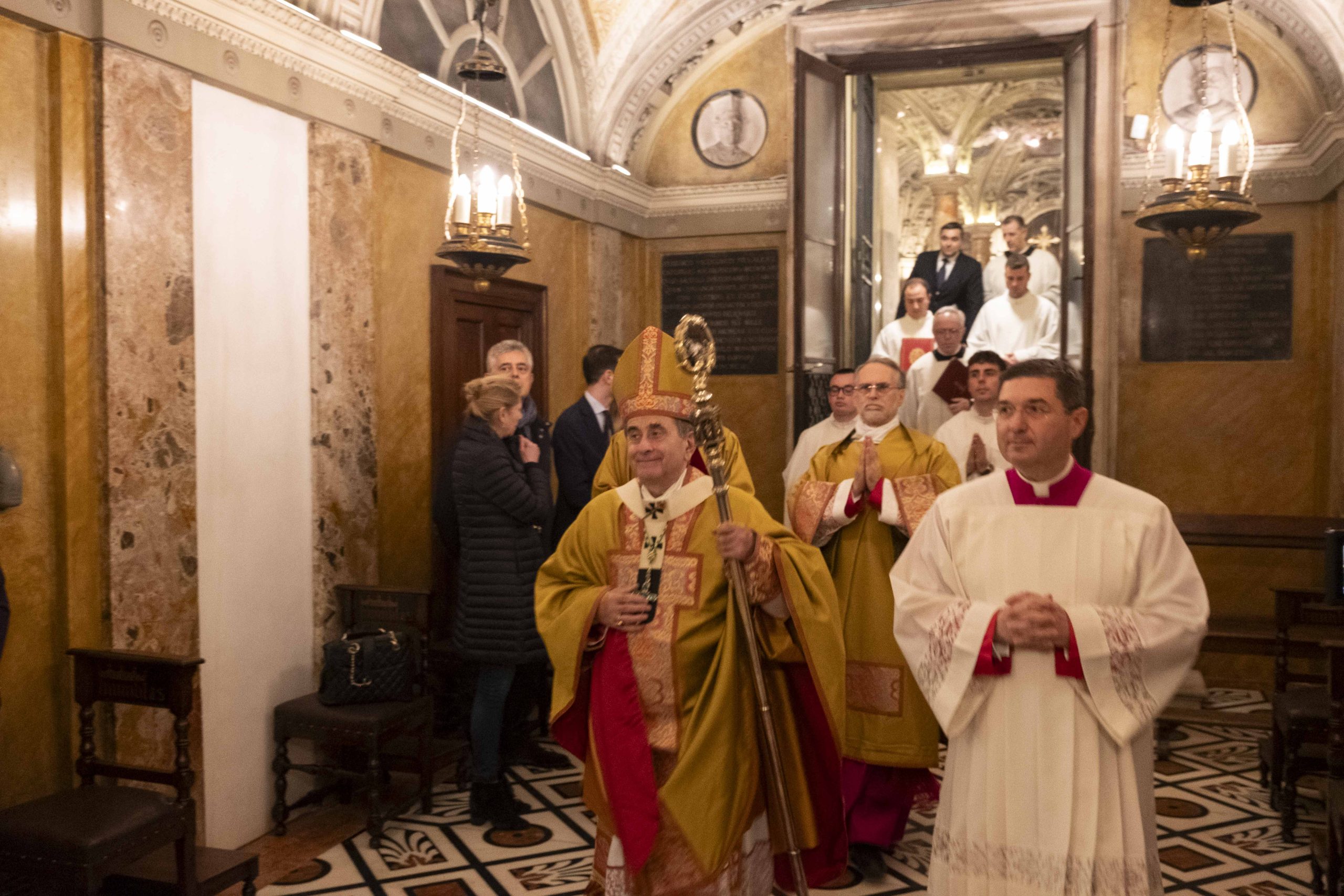 Particolarmente significativa la simbologia di coloro che rappresentano le Istituzioni fondate o rifondate da san Carlo: il rettore del Seminario, don Enrico Castagna, accompagnato dai diaconi e dai seminaristi che animano la liturgia, gli Oblati, il moderator Curiae, monsignor Carlo Azzimonti e l’arciprete del Duomo, monsignor Gianantonio Borgonovo. Non mancano gli appartenenti alle Confraternite e agli Ordini cavallereschi e i vertici della Fabbrica del Duomo con il presidente, Fedele Confalonieri, in prima fila anche per l’importante inaugurazione dello Scurolo, restaurato dopo 2 anni di lavori, che si svolge al termine della celebrazione.