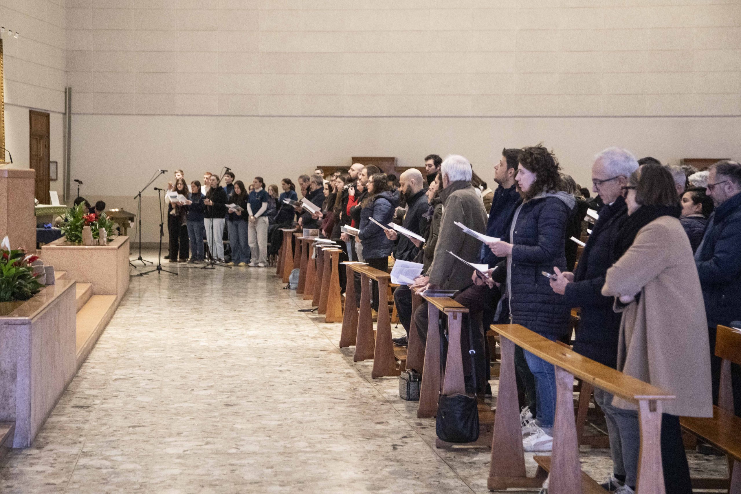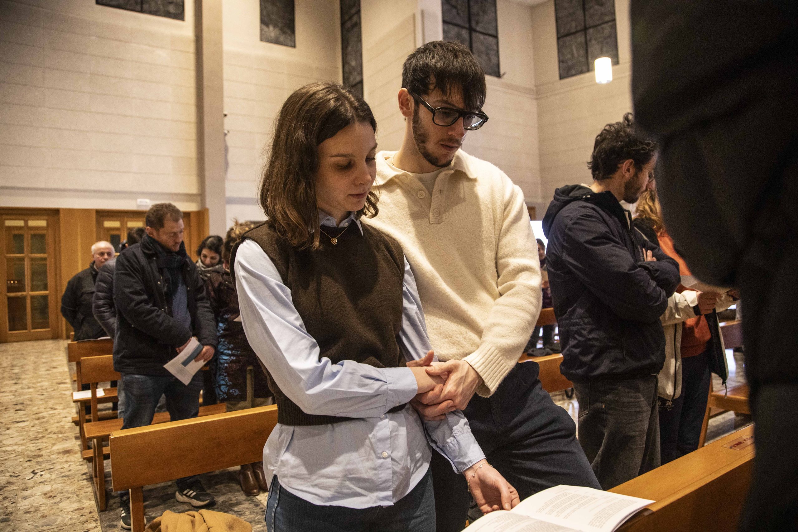 Gli abbracci, le confidenze reciproche sussurrate seduti sulle panche della chiesa, lo scambio di un bacio veloce e un po’ intimidito, i canti, il silenzio carico di un amore che si tocca con mano, gli occhi pieni di speranza per il domani.