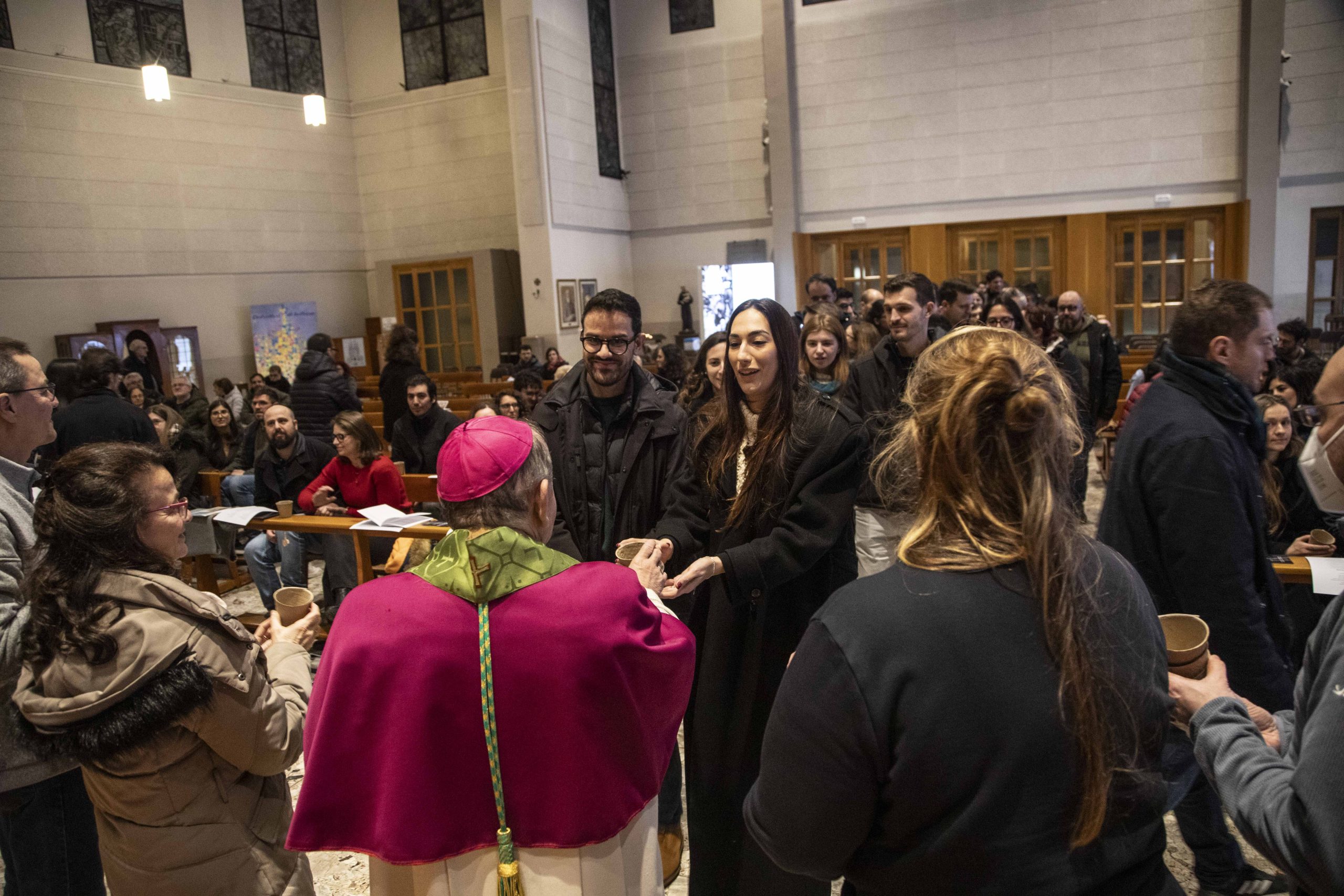 Davanti al vescovo Mario Delpini circa duecento giovani in cammino di coppia – che allarga il campo rispetto alla tradizionale definizione di “fidanzati” – per un momento di riflessione e affidamento che si svolge in contemporanea a Milano, per la Zona I, e a Castellanza per la IV, alla vigilia della festa degli innamorati, San Valentino.