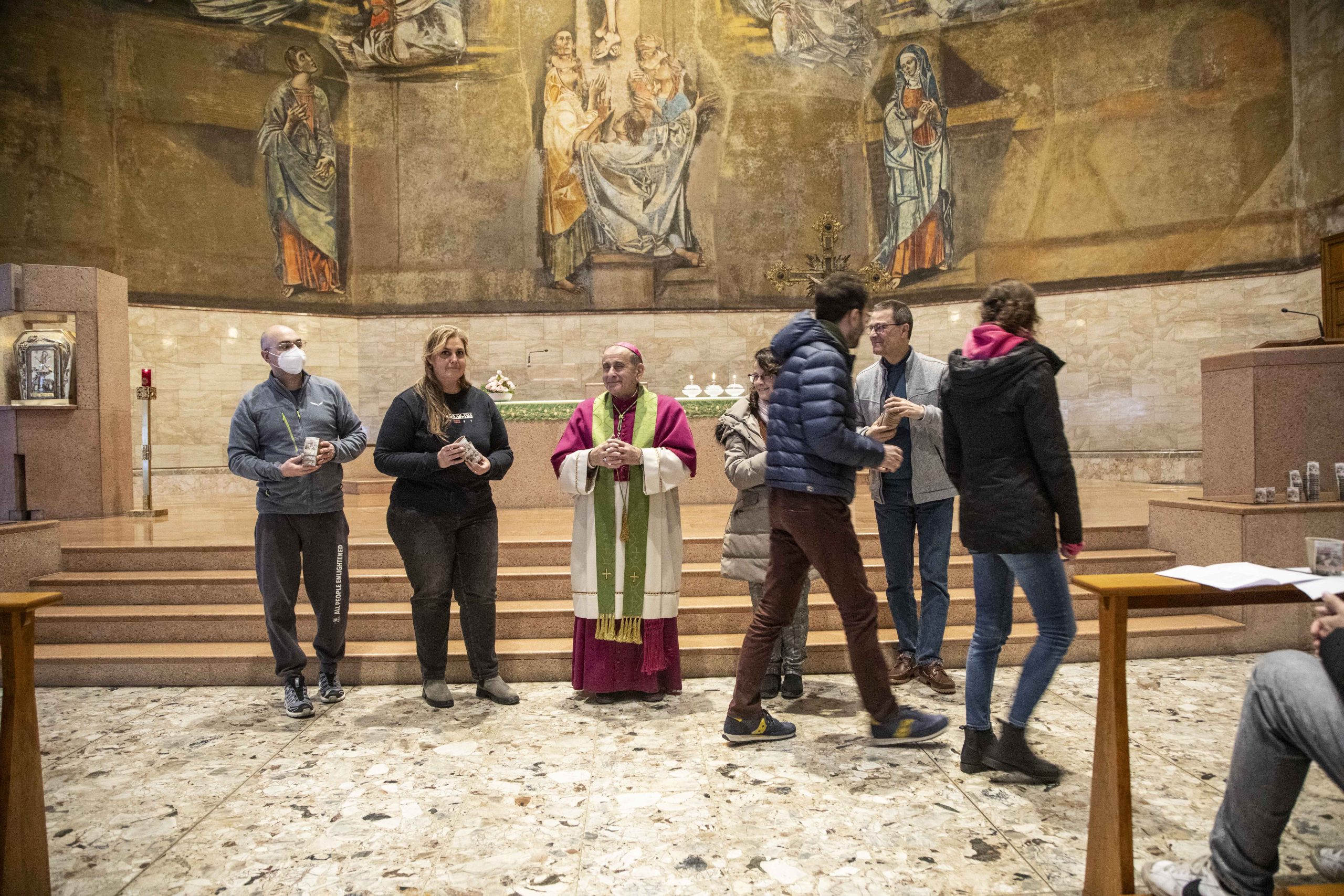 Ma, avverte subito monsignor Delpini, «la rivelazione, quando si sta insieme con il Signore nella brezza del mattino, non è una specie di incanto, una favola, è la vicenda di una vita che può incontrare anche momenti drammatici». Perciò Isaia dice che certi giorni “dovrai attraversare le acque”, che significa «essere come travolti da una pioggia violenta, come trascinati da un fiume. È in questo momento che si vede e che si matura l’originalità cristiana. Invece di arrenderti», scandisce il vescovo Mario che pare guardare negli occhi uno a uno i giovani, «e di essere abitato dal risentimento per una vita che è più difficile di quanto immaginavi, per un percorso che è più arido di quanto ti sembrava di riuscire a sopportare; invece di perderti d’animo, di arrabbiarti, ascolta la promessa di Dio».