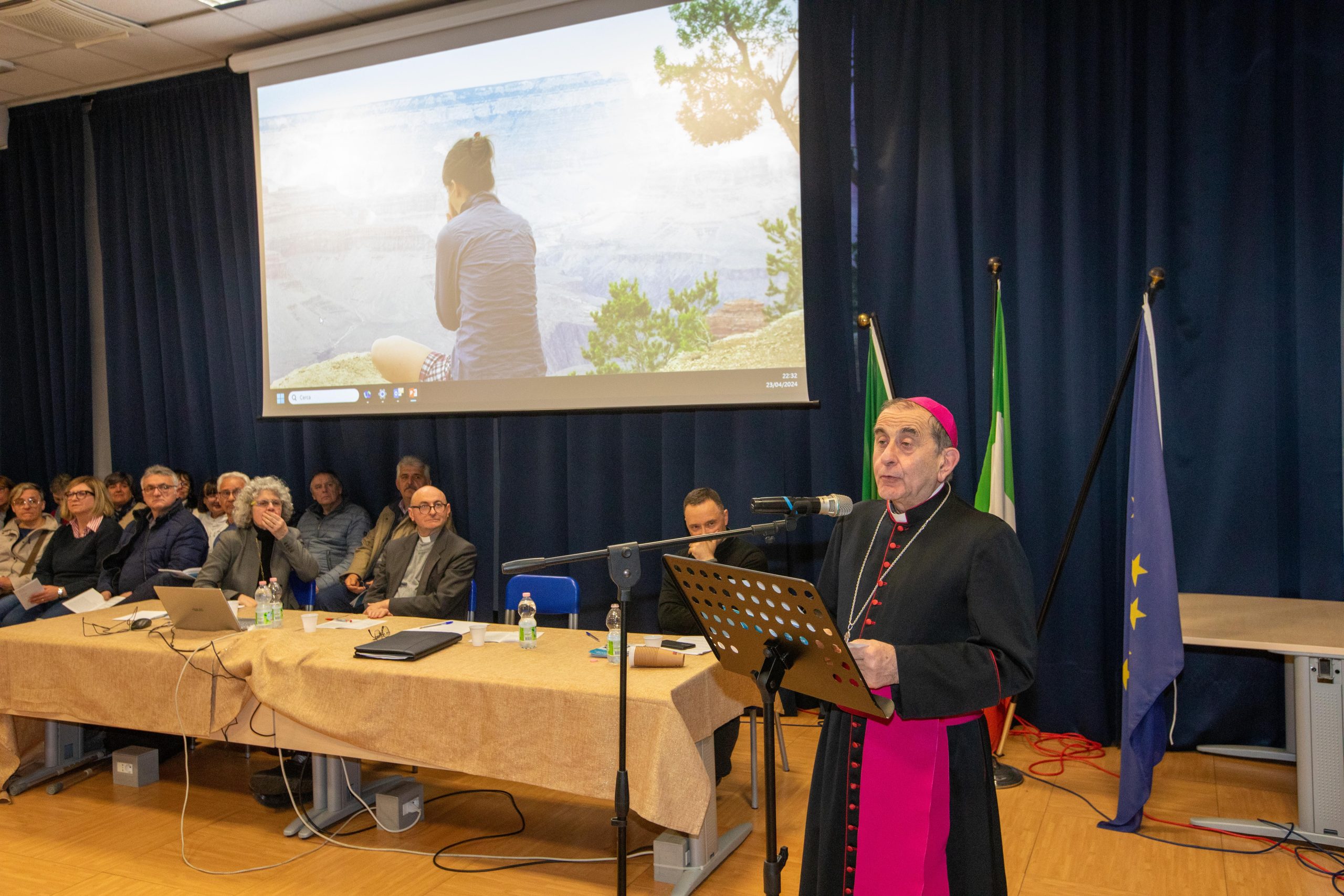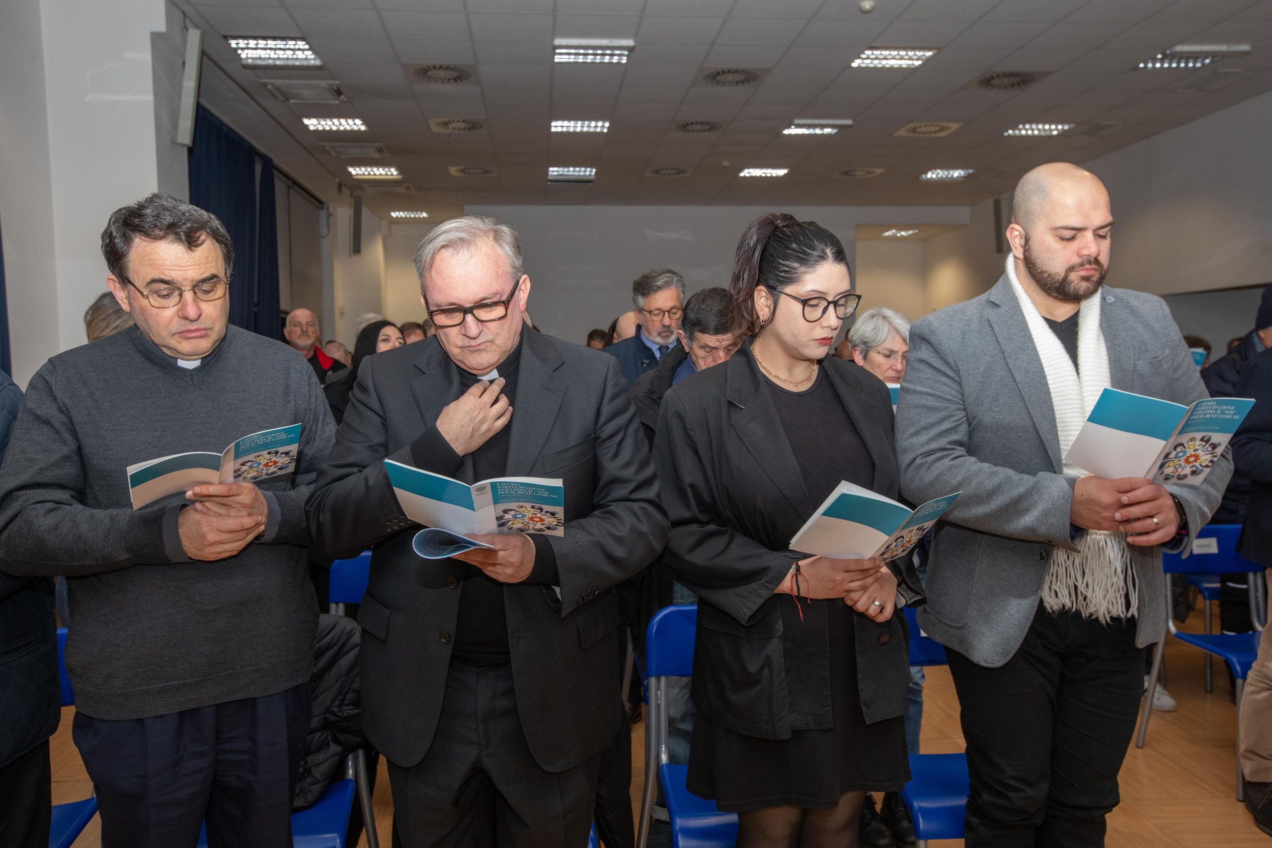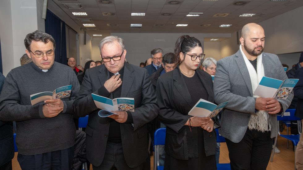 «Ai problemi sociali si risponde con reti comunitarie, con parole all’altezza del cambiamento, come appunto la poesia che ci fa vedere un orizzonte più largo, spaccando nel profondo e trasformando le cose. Preoccupiamoci dell’Intelligenza artificiale, ma anche della robotizzazione dell’umano, sapendo che robota, in lingua ceca, significa schiavo. Il “noi” del bene comune non è una questione organizzativa, ma un dato di fatto perché nessuno si fa da solo o può fare da solo. Il bene comune è quel “noi tutti” formato da individui, famiglie, gruppi intermedi che si uniscono in comunità sociali: quindi, il primo bene comune è la nostra convivenza, perché siamo oggettivamente legati da qualcosa che ci tiene insieme e che muove dalla gratitudine», conclude Beretta, prima della preghiera finale e della benedizione.
