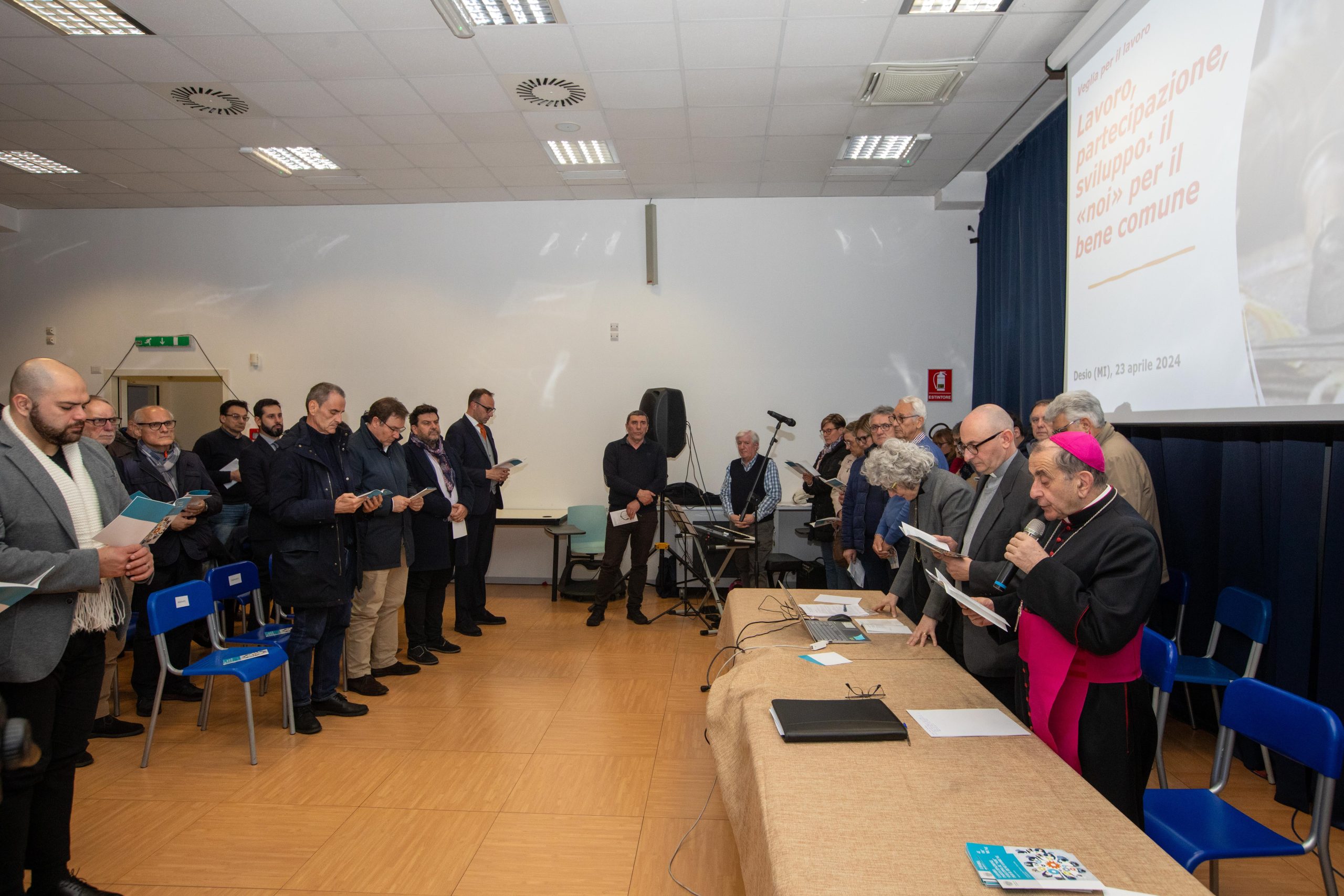 È stato questo, nelle parole dell’Arcivescovo, il suggello dell’intensa e articolata Veglia diocesana per il Lavoro, dal titolo «Lavoro, partecipazione, sviluppo: il ‘noi’ per il bene comune». Incontro svoltosi presso il Consorzio Desio-Brianza a Desio, in occasione della visita pastorale nel Decanato e nell’imminenza della festa del 1° maggio, con la presenza di lavoratori e lavoratrici, persone impegnate nelle realtà sociopolitiche e occupazionali, autorità (tra cui il sindaco della città Simone Gargiulo e diversi assessori), il responsabile della Comunità pastorale don Mauro Barlassina e il decano monsignor Maurizio Tremolada.
