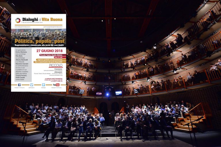 Riprendono gli appuntamenti pubblici dei Dialoghi di Vita Buona. Mercoledì 27 giugno, alle 21, presso la sede del Piccolo Teatro Studio Melato di via Rivoli 6 a Milano, è in programma la serata di riflessione e confronto che per il terzo anno propone un metodo originale per un confronto sui principali temi che animano il vivere comune.