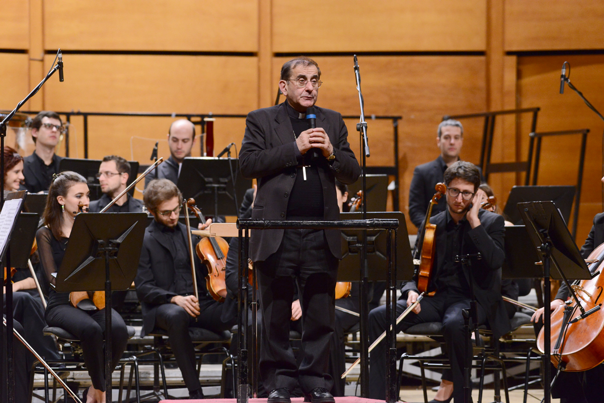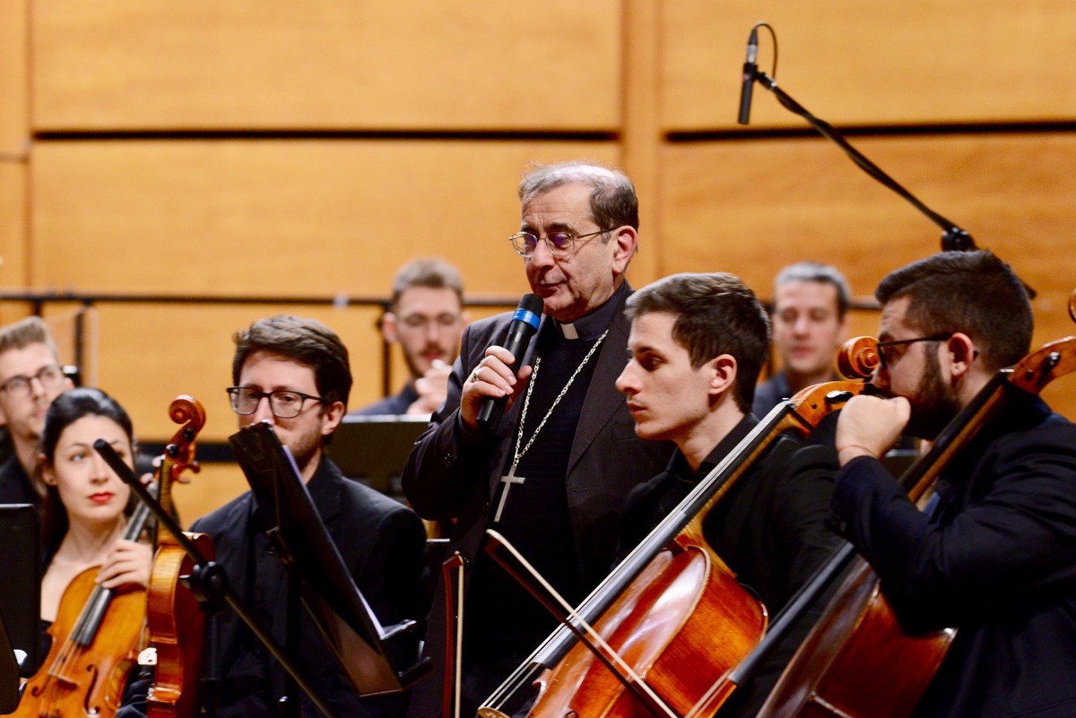 Anche l’Arcivescovo, che sale brevemente sul palco ringraziando «per la collaborazione stabilitasi tra questa orchestra che esprime la propria competenza e il Fondo», ricorda la significatività del Fondo stesso dal suo nascere, con il cardinale Tettamanzi nel Natale del 2008, fino all’attuale terza fase – «Diamo lavoro» – voluta dal cardinale Scola. «In questi anni i soldi sono venuti da tanta brava gente, persone ricche o modeste, che sentono che la solidarietà è una legge dell’essere uomini e non un gesto di bontà estemporaneo – osserva Delpini -. Pur senza avere la pretesa di risolvere tutti i problemi, tuttavia, in questa ultima fase – che ha nella Caritas, nelle Acli e nel tessuto parrocchiale i suoi riferimenti – sono già stati raccolti 2 milioni di euro, utilizzati non per dare sussidi, ma per studiare percorsi di reinserimento nel mondo occupazionale. Esprimo la mia ammirazione per l’iniziativa di un’orchestra di giovani che si propongono come persone capaci di offrire il loro talento per il bene di tutti».