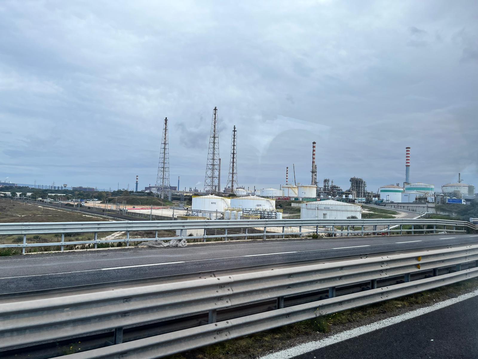 Prima tappa è la visita guidata ai quartieri periferici ex Ilva ed Eni. Molti sono i luoghi malmessi. Uno dei centri più importanti è la Raffineria, che conta più di mille lavoratori e raduna attorno a sé un grande indotto. Poco distante vi è l’ex Ilva, oggi Acciaierie d’Italia, con un’area di estensione doppia rispetto alla città di Taranto e 20 mila lavoratori dipendenti. Qui lavoro e salute si trovano spesso in conflitto. Impressionanti le grandi costruzioni che coprono i parchi minerari, volte a contenere le polveri ferrose, specialmente nei giorni ventosi. A risentire della vicinanza allo stabilimento è in particolare il quartiere Tamburi.