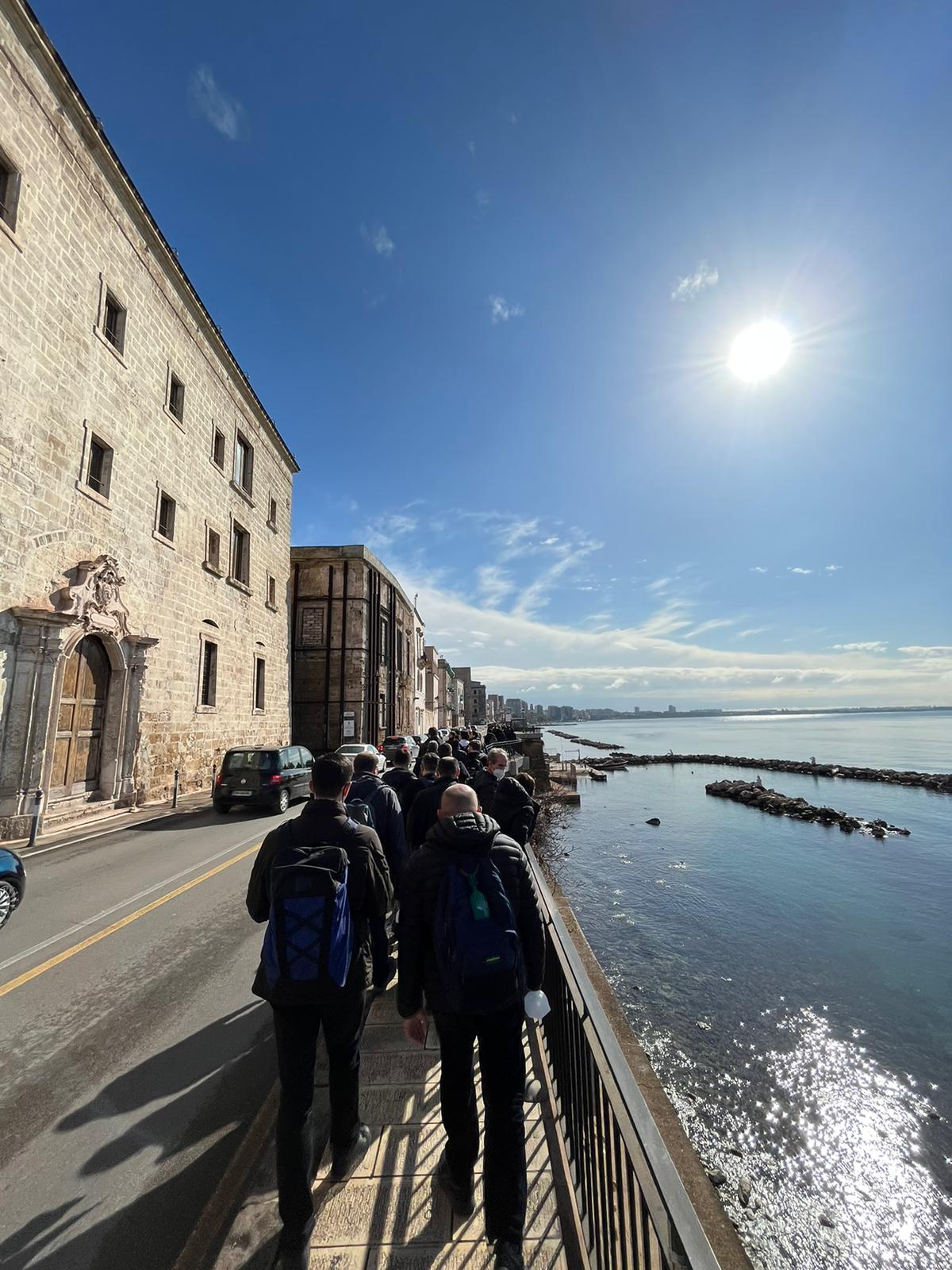 Giunti già a metà del nostro pellegrinaggio, partiamo in mattinata alla volta di Taranto, città ricca di bellezza, ma anche di contraddizioni, «ferita, ma non agonizzante», direbbe il suo Arcivescovo.