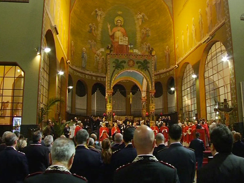 Di fronte a Santa Barbara, una delle storiche caserme cittadine – per i milanesi semplicemente la “Perrucchetti”, ancora nel cuore di tanti per l’attentato dell’ottobre 2009 -, nella grande chiesa dei Santi Martiri Nabore e Felice, il cardinale Scola presiede la celebrazione eucaristica per le Forze Armate, di Polizia e per le Associazioni della città di Milano.