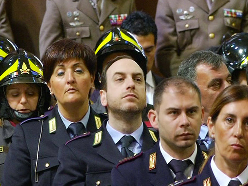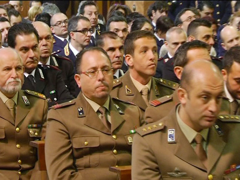 Nei giorni che ci avvicinano alla Passione e Risurrezione del Signore, il pensiero non può che andare al sacrificio: «C’e un valore della vita che è implicato dal dono totale di Gesù. Tutti noi siamo donati alla vita per donarci a nostra volta, come il Signore, che poteva non morire e che ha invece accettato di prendere su di sé le nostre fragilità. Il Cristo che è rimasto fedele, fino a essere inchiodato al palo della croce, per salvarci. Non c’è nel vostro lavoro, tanto delicato, dimensione più connaturata di quella del sacrificio che forse è più appropriato chiamare dono». Dono della vita intera per «tutti coloro che sono caduti nell’esercizio del loro dovere».