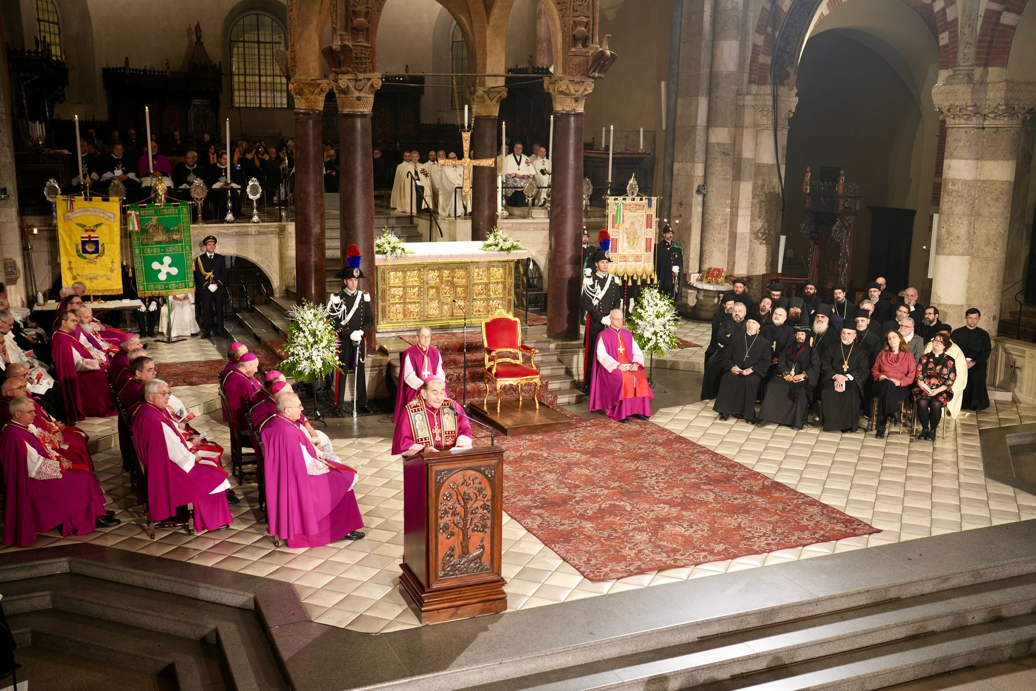 «Per Ambrogio – dice Delpini – ciò che caratterizza i cristiani è la fede, la decisione di porre Gesù, Figlio di Dio, come fondamento per una costruzione che non solo sappia resistere alle tempeste, ma possa anche trovare nuova vitalità, serenità, speranza. Rinnovo anch’io la mia professione di fede oggi, e condivido con tutti gli uomini e le donne di buona volontà la mia lettura delle minacce e delle ragioni della fiducia».