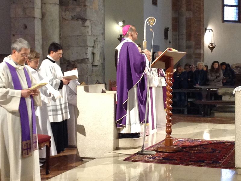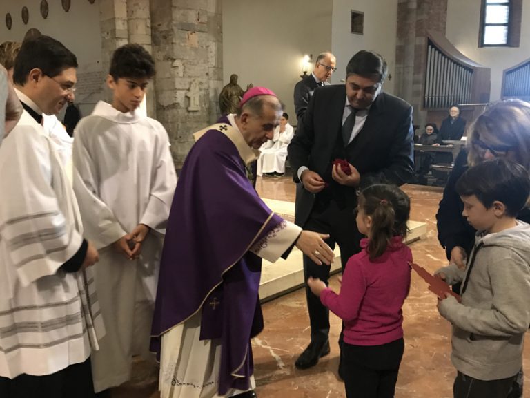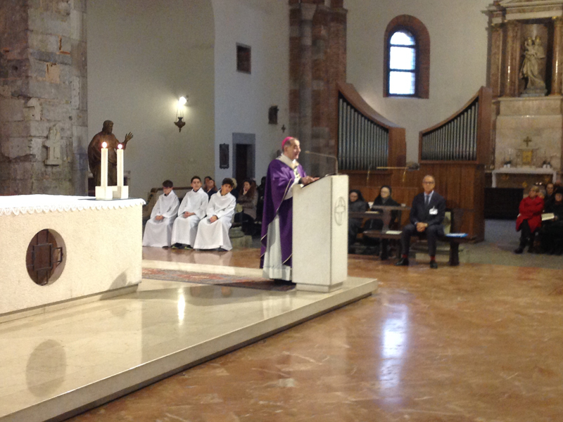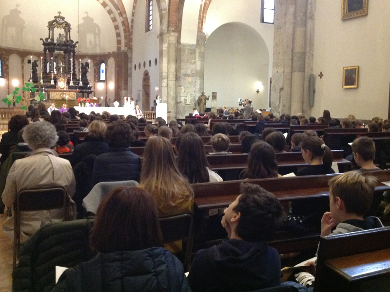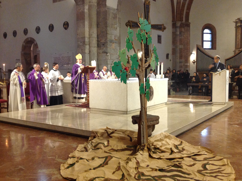 Non mancano le autorità civili, con l’assessore Marco Granelli in rappresentanza del Sindaco di Milano, un rappresentante del Sindaco di Besana e il Sindaco di Montano Lucino. Un semplice alberello di cartone, a lato dell’altare maggiore, rappresenta i frutti dell’intuizione di don Carlo, con tante foglioline tra le quali quelle presentate come doni all’Offertorio.