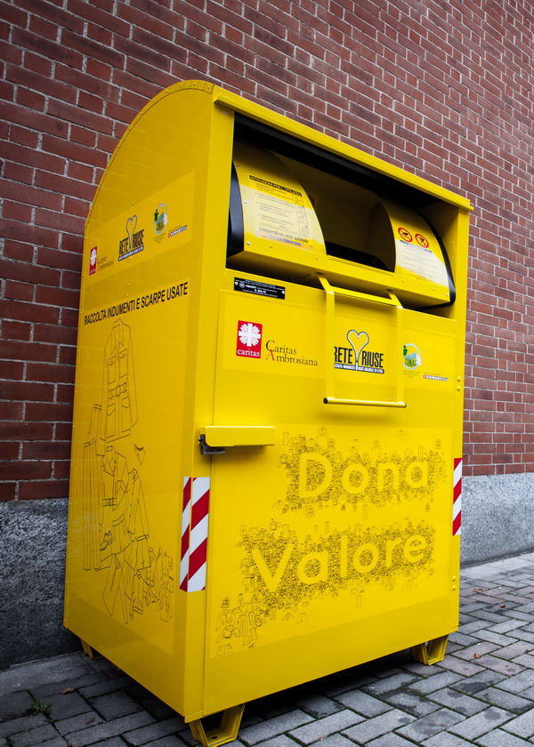 Negli ultimi anni il consumo dei prodotti dell’industria dell’abbigliamento è enormemente aumentato. Le persone hanno preso a disfarsi più rapidamente degli abiti che non usavano più portandoli in parrocchia, dove, per antica tradizione, venivano raccolti e donati alle famiglie bisognose. L’offerta ha superato così velocemente la domanda. A un certo punto le parrocchie non riuscivano più a ridistribuire tutto quello che ricevevano, perché il numero di capi era ben superiore a quello dei poveri. Ci chiedemmo allora che cosa fare di questa montagna di abiti usati, destinata a finire in discarica come rifiuto, producendo alti costi economici e ambientali legati allo smaltimento. Decidemmo quindi di creare due canali di recupero complementari: quello tradizionale affidato ai volontari dei centri di ascolto che distribuisce ancora oggi direttamente alle persone in difficoltà gli abiti usati, attraverso i “guardaroba dei poveri”, e quello affidato alle cooperative sociali, chiamato “Dona Valore”. Le cooperative raccolgono gli abiti usati e gli accessori (scarpe e borse) in contenitori gialli, i cosiddetti cassonetti, con il marchio delle Caritas delle diocesi di Milano e Brescia posti in aree concesse dalle pubbliche amministrazioni attraverso regolari bandi. Poiché, per la legge italiana, quegli abiti sono rifiuti, le cooperative li vendono a imprese autorizzate a svolgere il lavoro di selezione, cernita e igienizzazione. Con il ricavato di questa vendita vengono finanziati progetti sociali promossi dalle Caritas. In questo modo degli scarti, invece di essere un problema da gestire generano ricchezza che viene investita a favore di persone in difficoltà. Non solo. Essendo la raccolta affidata a cooperative sociali che impiegano persone svantaggiate, la gestione stessa dell’attività ha un immediato impatto sociale, offrendo opportunità di impiego a soggetti deboli. Oggi sono impiegati 87 lavoratori, il 70% dei quali in condizioni di svantaggio.