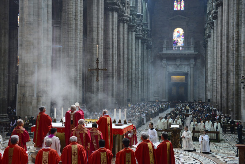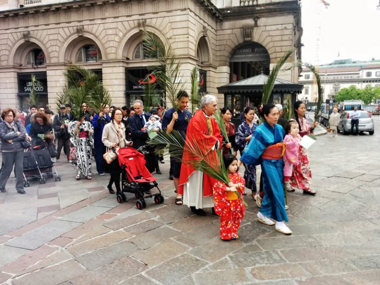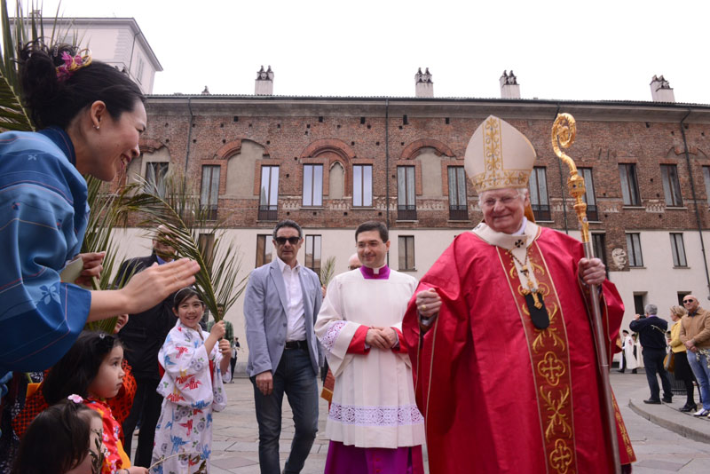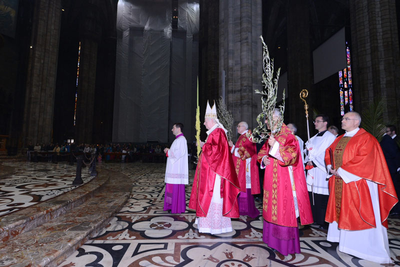 Parole che colpiscono, prosegue Scola, «guardando ai dolorosi conflitti e alle troppe forme di violenza ancor oggi diffuse”, che “creano sgomento nel nostro cuore». Ma non perdiamo la speranza, prosegue: «Ne è segno il fatto che siamo convenuti qui in Duomo, provenienti dalle molte nazioni che abitano la metropoli milanese e ne stanno costruendo il futuro e la nuova fisionomia, per affidare a Gesù la supplica per la pace. Il ramo di ulivo o di palma che esporremo nelle nostre case e nei nostri ambienti di vita sarà un segno che vogliamo essere autentici uomini di pace».