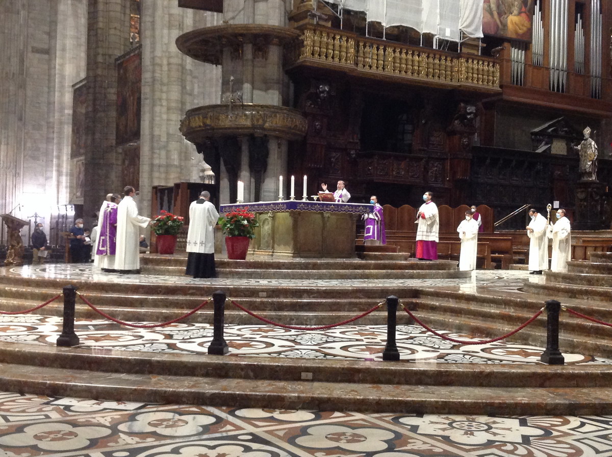 Alla fine della Celebrazione, ancora «un incoraggiamento a vivere intensamente la giornata di sant’Ambrogio affinché continui a benedire la nostra Chiesa Ambrosiana». E, nella Festa dell’Immacolata guardando a Maria, l’invito è a «sentire a quale altezza siamo chiamati. L’8 dicembre è anche il giorno dell’Adesione all’Azione Cattolica. Vorrei che molti partecipassero e si associassero all’A.C. perché sentiamo il bisogno di un laicato formato a un profondo senso ecclesiale per poter essere presente negli ambienti di vita a dare testimonianza; essere presente nella comunità cristiana con una sapienza che sia consiglio, collaborazione, corresponsabilità. La festa dell’Adesione è un occasione per dare vigore a questa Associazione così meritoria e importante».