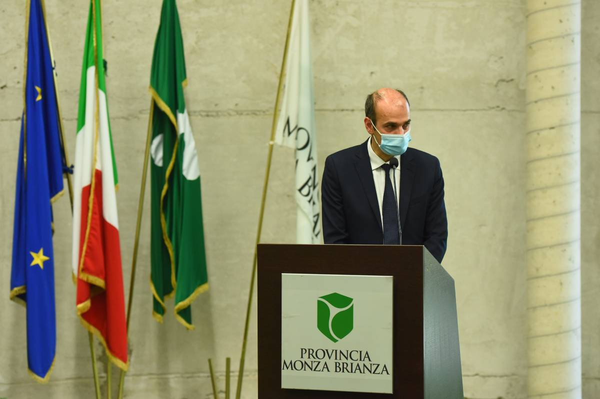Sabino Illuzzi, facente parte della Commissione, ricorda i riferimenti al Discorso di Sant’Ambrogio 2020 e l’Enciclica “Fratelli Tutti” di papa Francesco, mentre il saluto di benvenuto è offerto dal Presidente della Provincia, Luca Santambrogio, anch’egli sindaco, che sottolinea il significato del ritrovarsi nella Sala “Ghezzi”, detta la Sala dei Comuni. La dove si celebra il premio intitolato al patrono, il beato don Luigi Talamoni, andato nei mesi scorsi proprio ai sindaci che sono rimasti al loro posto. «La forza di questo territorio è fare squadra come dimostra il progetto BrianzaReStart», patto bipartisan per fare ripartire il territorio.