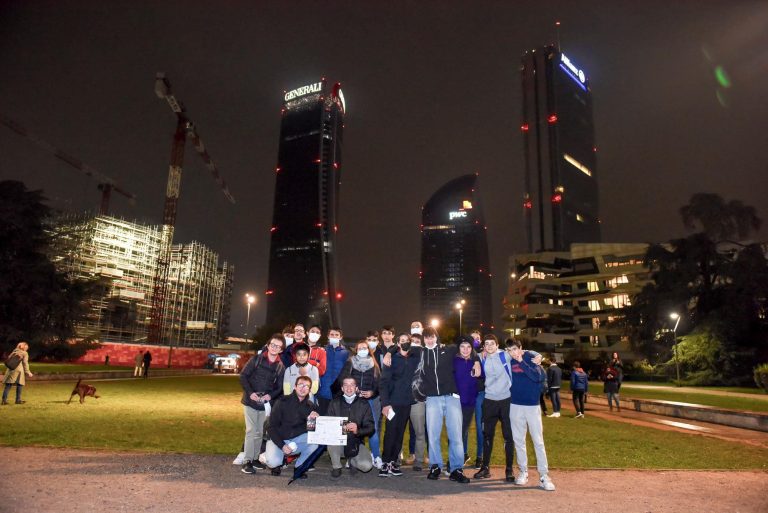 L’emozione c’è e si vede negli occhi di ragazzine e ragazzine, accompagnati dai “don” e dagli educatori, che guardano in alto, che fanno confronti con i paesi, magari molto piccoli, da cui sono arrivati per vivere non la notte di Halloween (come tanti coetanei), ma una notte che parla di santità. Santità normali e, insieme, uniche di coetanei, troppo presto finite, che segnano un cammino simboleggiato dai piccoli lumini che portano con sé i ragazzi, ma anche dal cielo illuminato dalle luci delle Torri, tra cui quella “Allianz” che, con i suoi 209 metri di altezza e 50 piani è la più alta d’Italia e tra le prime in Europa.