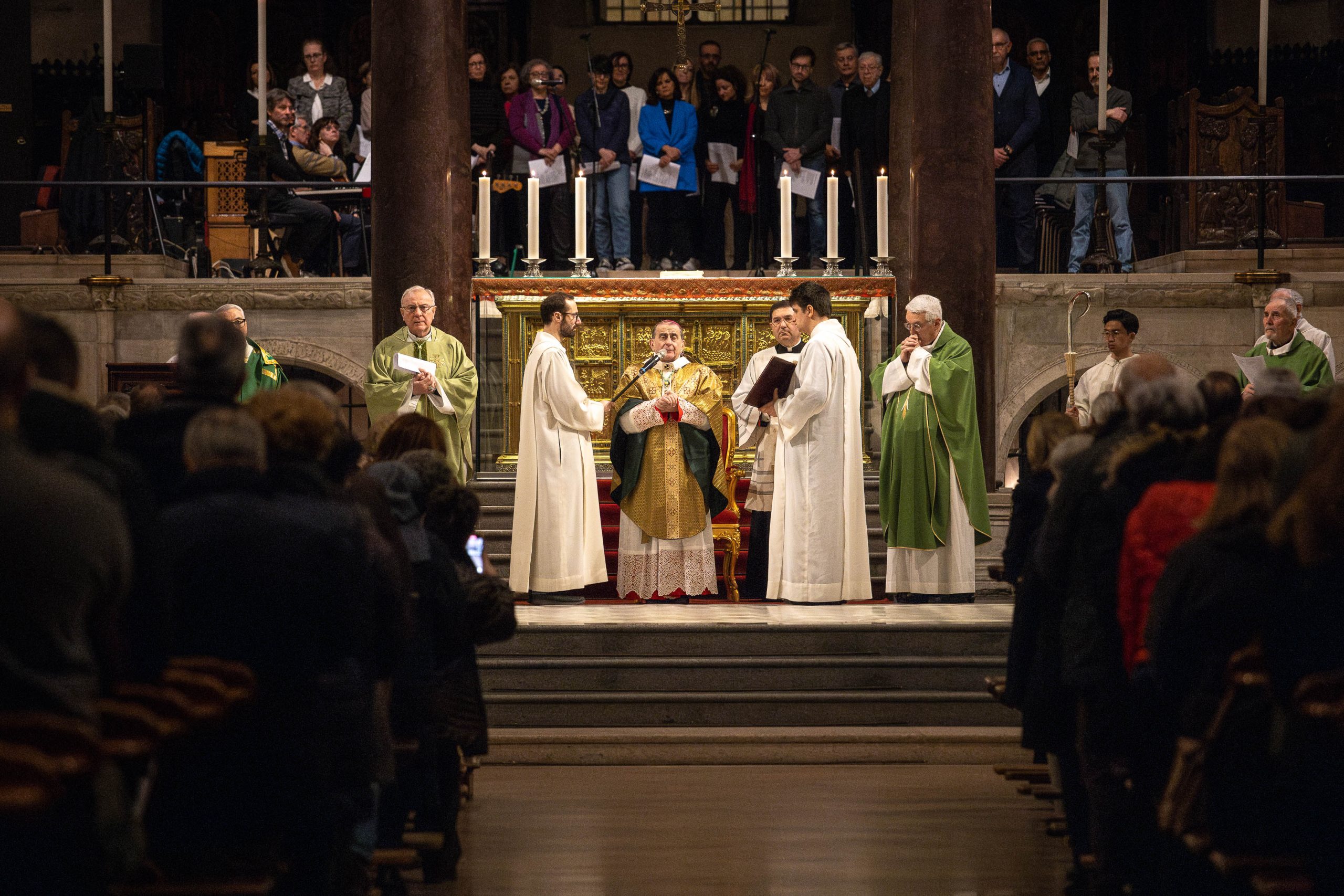 «La sua parola è fonte di meditazione e principio di discernimento», si dice nel saluto di benvenuto all’Arcivescovo, all’inizio della Messa animata al meglio dal coro e concelebrata da una decina di sacerdoti, tra cui i presbiteri vicini ai Focolari, l’abate della basilica monsignor Carlo Faccendini, il vicario episcopale per la Vita Consacrata monsignor Walter Magni e monsignor Luca Bressan, vicario per il Coordinamento Associazioni, Movimenti e Gruppi. Tra i fedeli presenti, figure rappresentative del Movimento a livello ambrosiano e lombardo, impegnate anche in organismi centrali diocesani, molti giovani e rappresentanti del Consiglio delle Chiese cristiane di Milano (con il vicepresidente Francesco Castelli, in rappresentanza del presidente padre Traian Valdman), e del Forum delle Religioni, proprio per il carisma di dialogo e pace tra le religioni da sempre voluto da Lubich come caratteristico dei Focolari. In prima fila siede padre Ambrogio Makar, archimandrita del patriarcato di Mosca a Milano.
