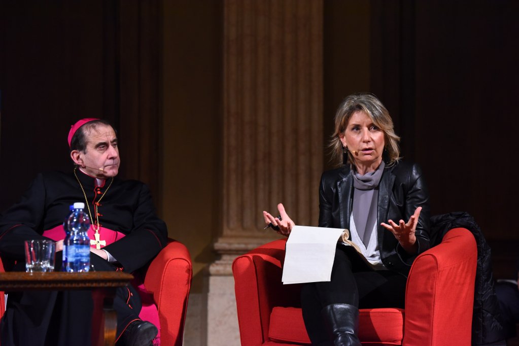 La Sala Barozzi è gremita, anche perché il tema su cui si discute è di strettissima attualità e non può non coinvolgere tanti. Infatti, su “Il diritto a essere correttamente informati: i media tra disintermediazione e la sfida per una comunicazione al servizio della verità”, si confrontano, con la moderazione del caporedattore Esteri di “Repubblica”, Daniele Bellasio, professionisti molto noti quali Tiziana Ferrario, volto del Tg1 Rai e Marco Alfieri, caporedattore responsabile web de “Il Sole 24 Ore”.