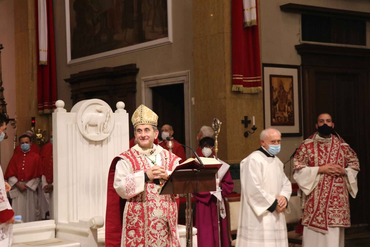 “Compleanni” che sottolinea il prevosto monsignor Molinari e che tornano anche nella riflessione dell’Arcivescovo, nella consapevolezza delle difficoltà di oggi. «Sembra che insieme con l’euforia di una ripresa dopo la pandemia, insieme con la determinazione per una retorica dell’incoraggiamento, insieme con l’esasperazione delle discussioni, si diffonda una grigia tristezza». Grigiore che ha la sua radice nello scoraggiamento, nella formalità, nel pregiudizio. «Ma questa Chiesa è incaricata di offrire il rimedio alla grigia tristezza. Il rimedio è il roveto che continua ad ardere, l’ardore che offre luce, calore, passione per la vita. La comunità cristiana non ha clamorose rivelazioni, proclamazioni solenni e programmi rivoluzionari. Noi non abbiamo che Gesù e proprio in lui riconosciamo il rimedio alla tristezza che rende grigio il mondo. Non rispondiamo al pregiudizio che non si aspetta niente con dibattiti, polemiche, rivendicazioni di meriti, ma piuttosto con la perseveranza nell’ardore». Per questo – suggerisce il Vescovo – vincono i colori e la luce. «Il nostro Dio non abita in lontananze inaccessibili, non parla con fulmini e spaventi, non minaccia castighi e disastri. È la presenza amica dell’uomo di Nazaret che offre la sua amicizia, è il fuoco che arde e che vuole suscitare l’ardore nella comunità, è la luce che splende e che vuole avvolgere di luce ogni vita. Da 240 anni in questa chiesa si celebra l’eucaristia, si offre il pane della vita, per la vita eterna. La celebrazione non è la ripetizione di un rito, ma l’accostarsi al fuoco per diventare fuoco».